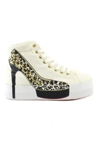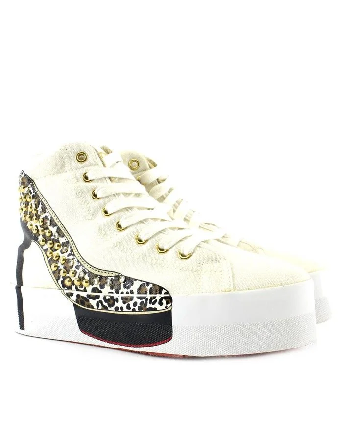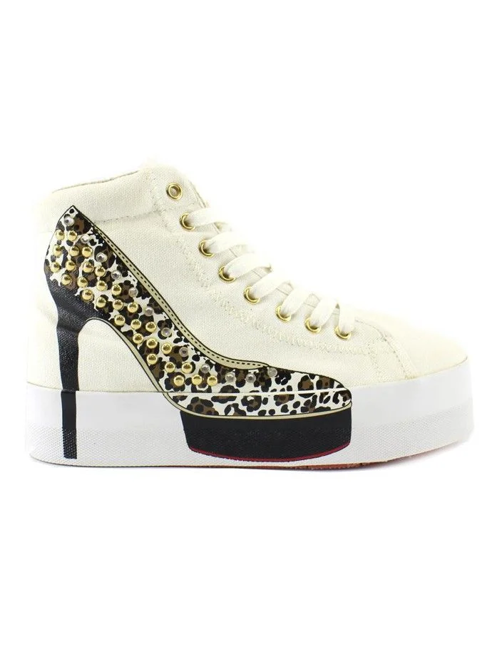 Sneakers alte donna ,stampa scarpa a fantasia animalier con borchie oro, suola alta in gomma.