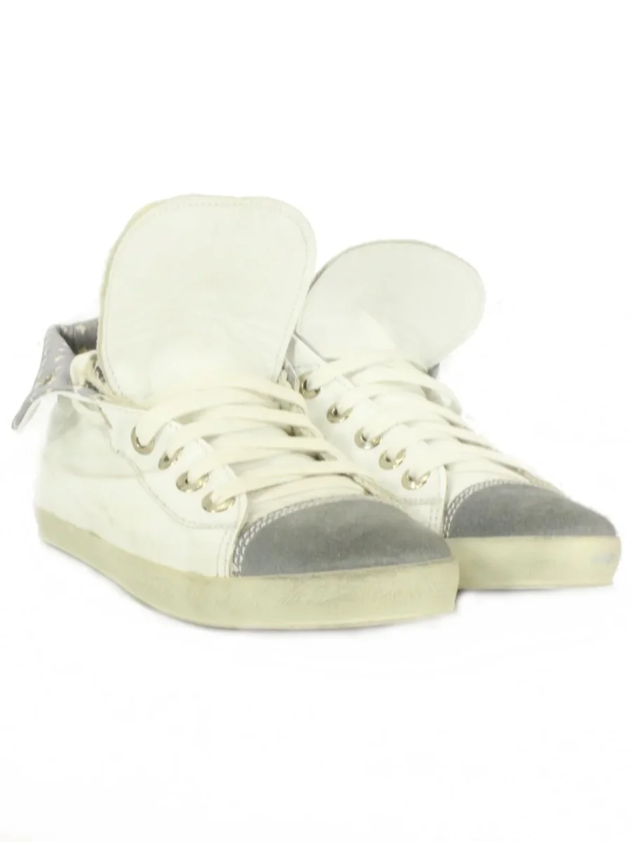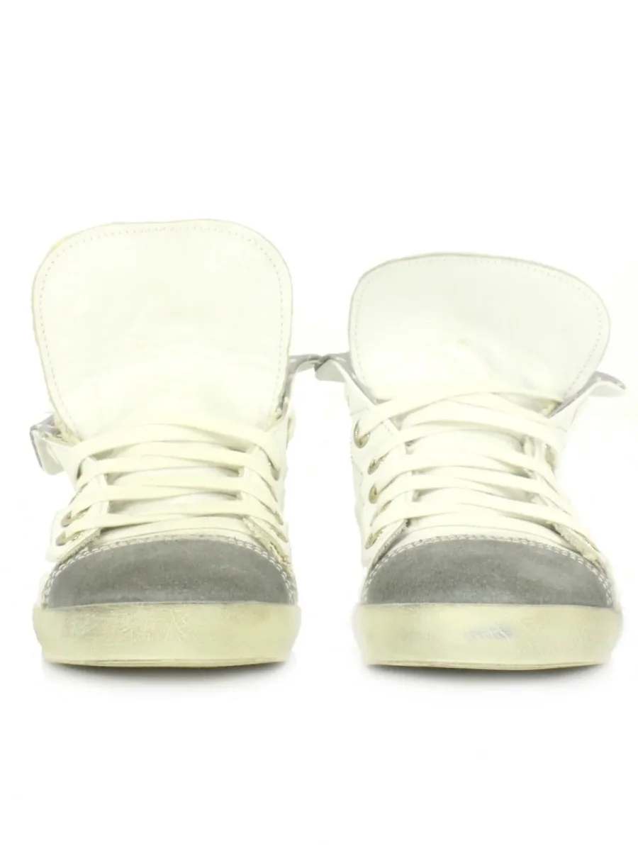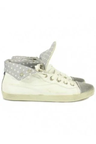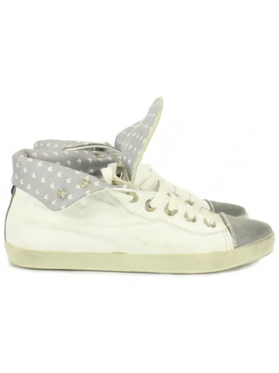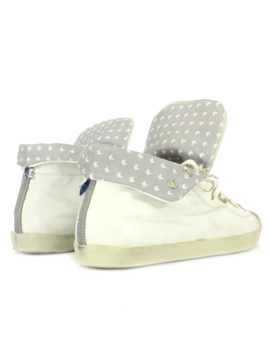 Sneakers alte donna, in pelle, con lacci e interni a fantasia farfelle. Suola in gomma.