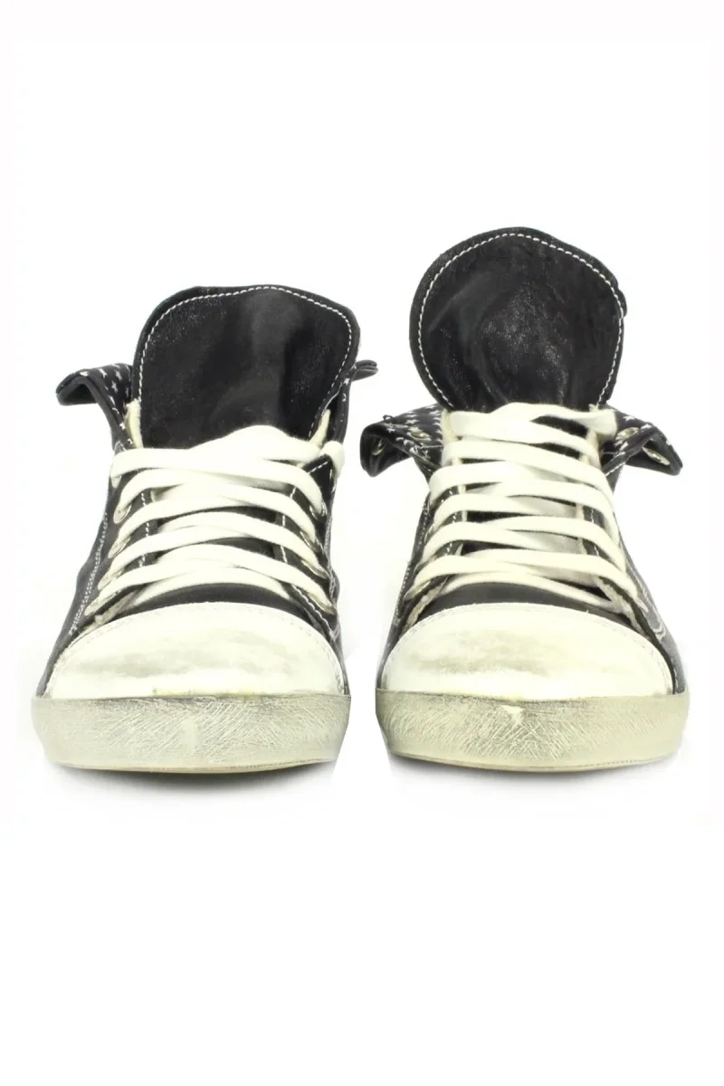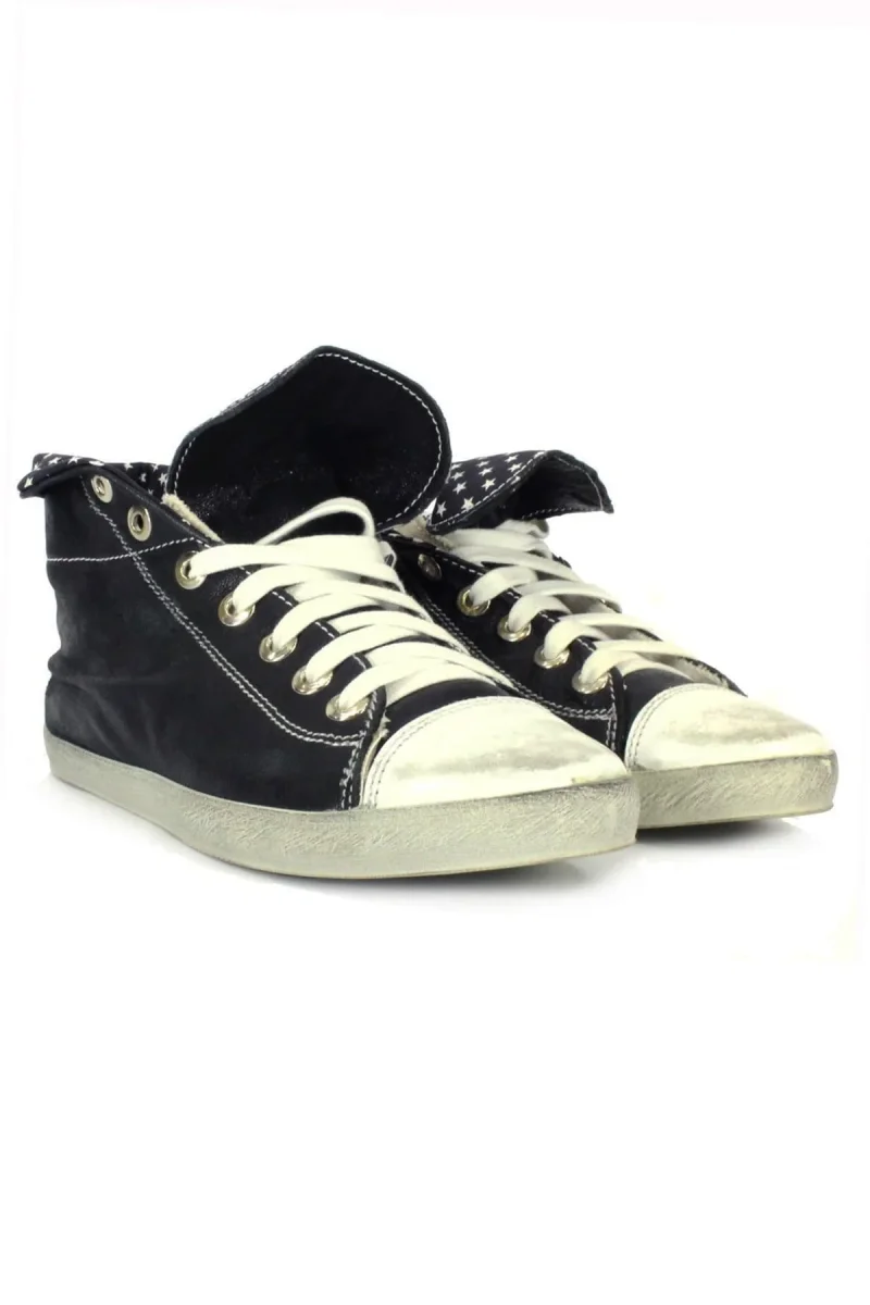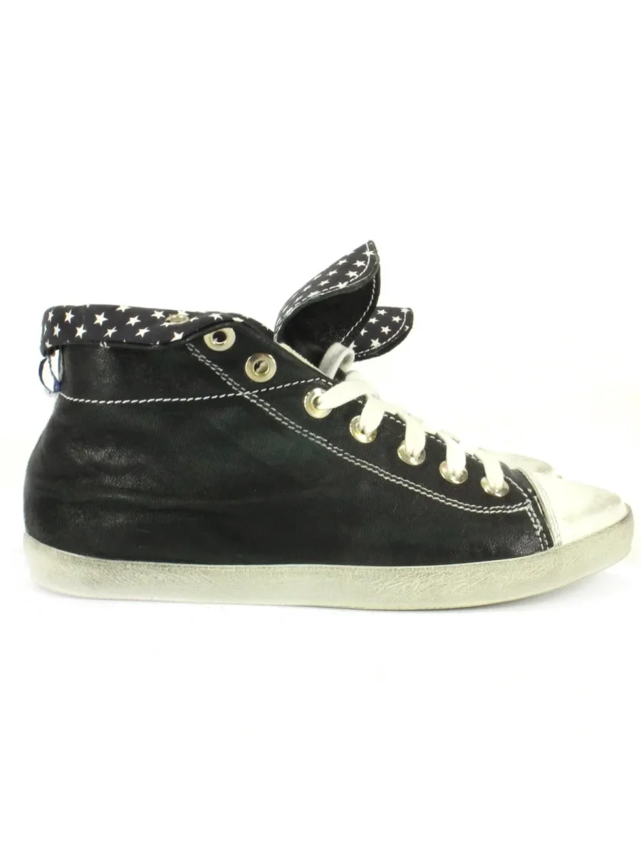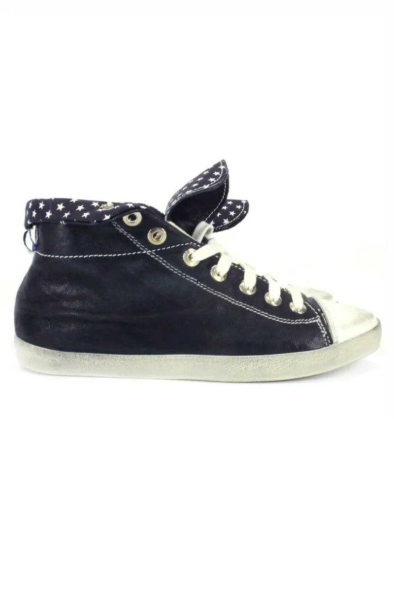 Scarpe estive da donna in pelle modello sneakers a stivaletto bicolor con fantasia interna stelle made in Italy