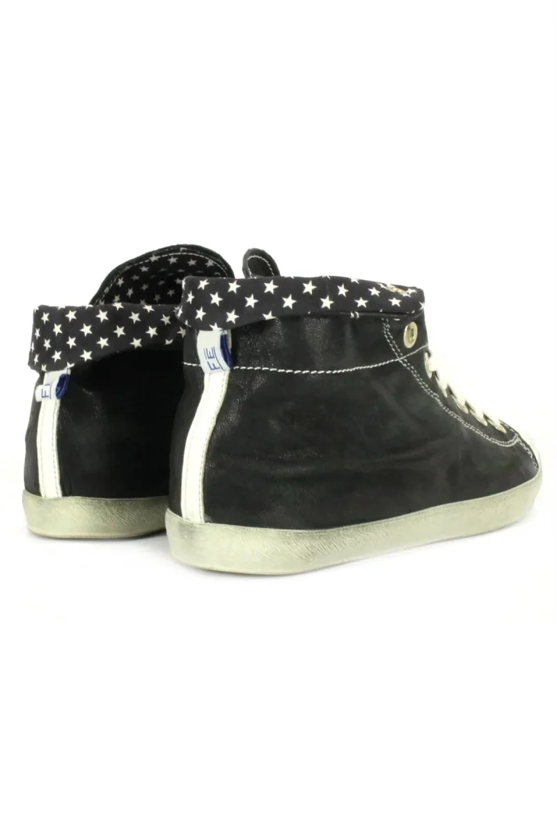 Sneakers alte donna in pelle, con lacci, interni a fantasia stelle, suola in gomma.
