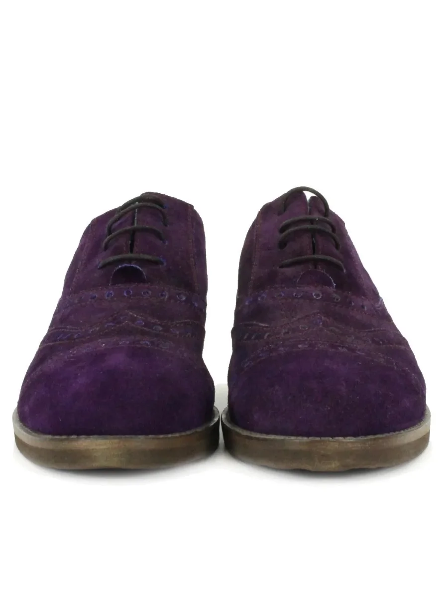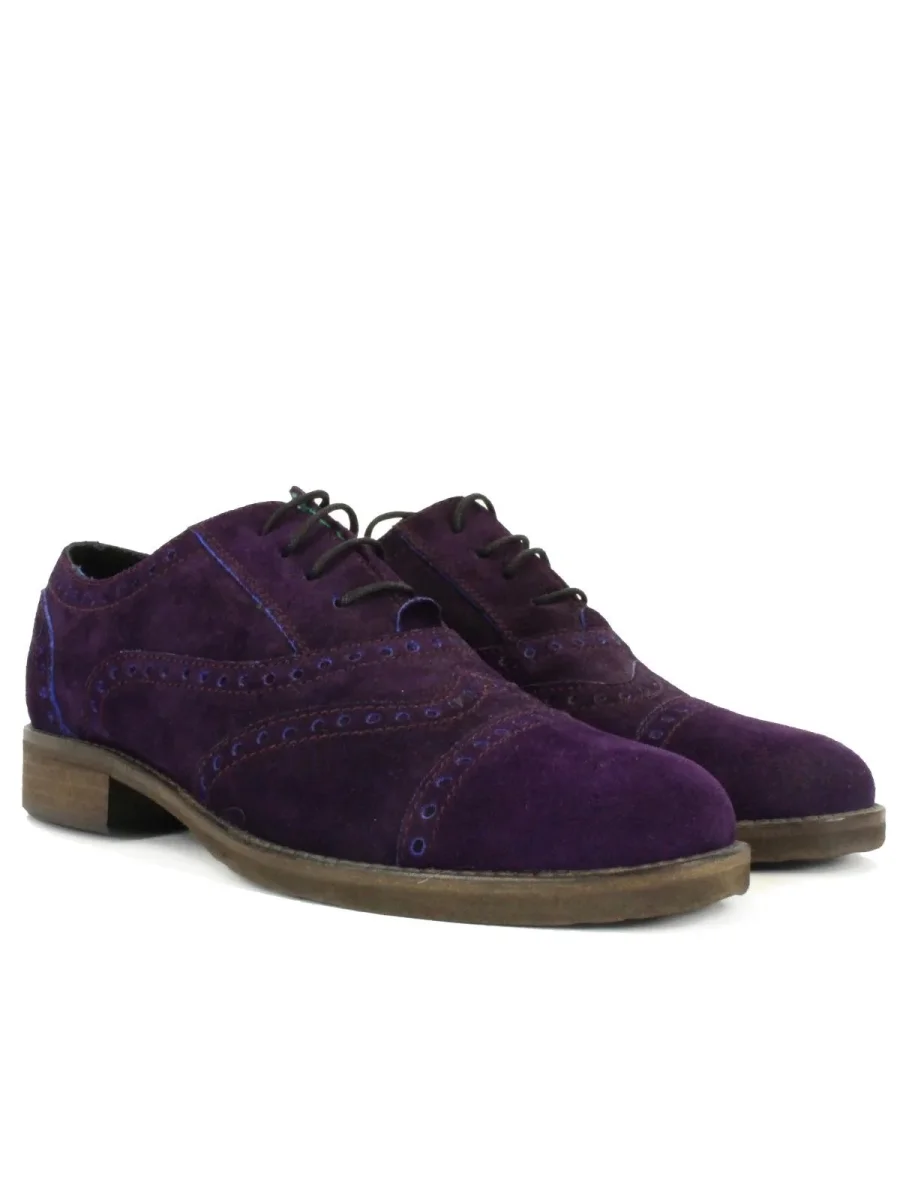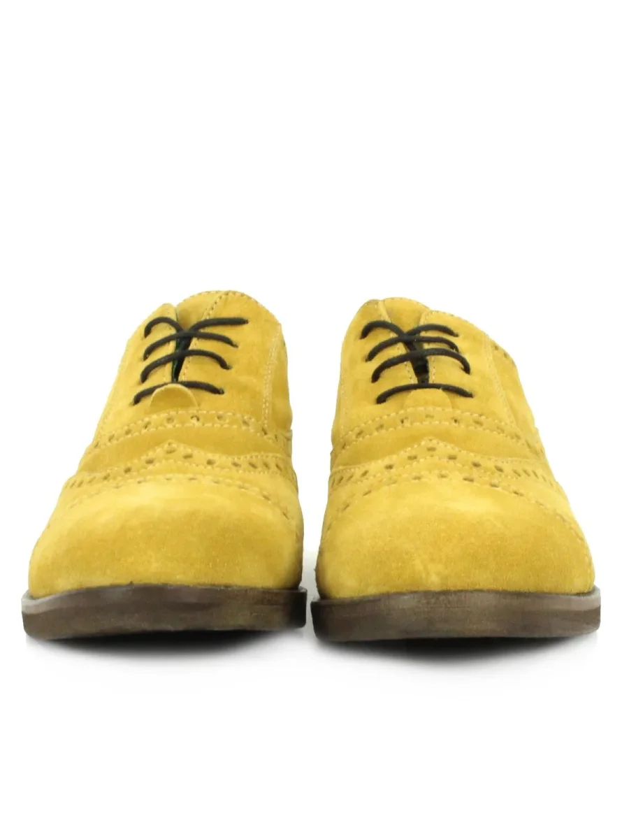 Scarpe donna stringate, modello stile inglese, in camoscio, con suola cuoio.