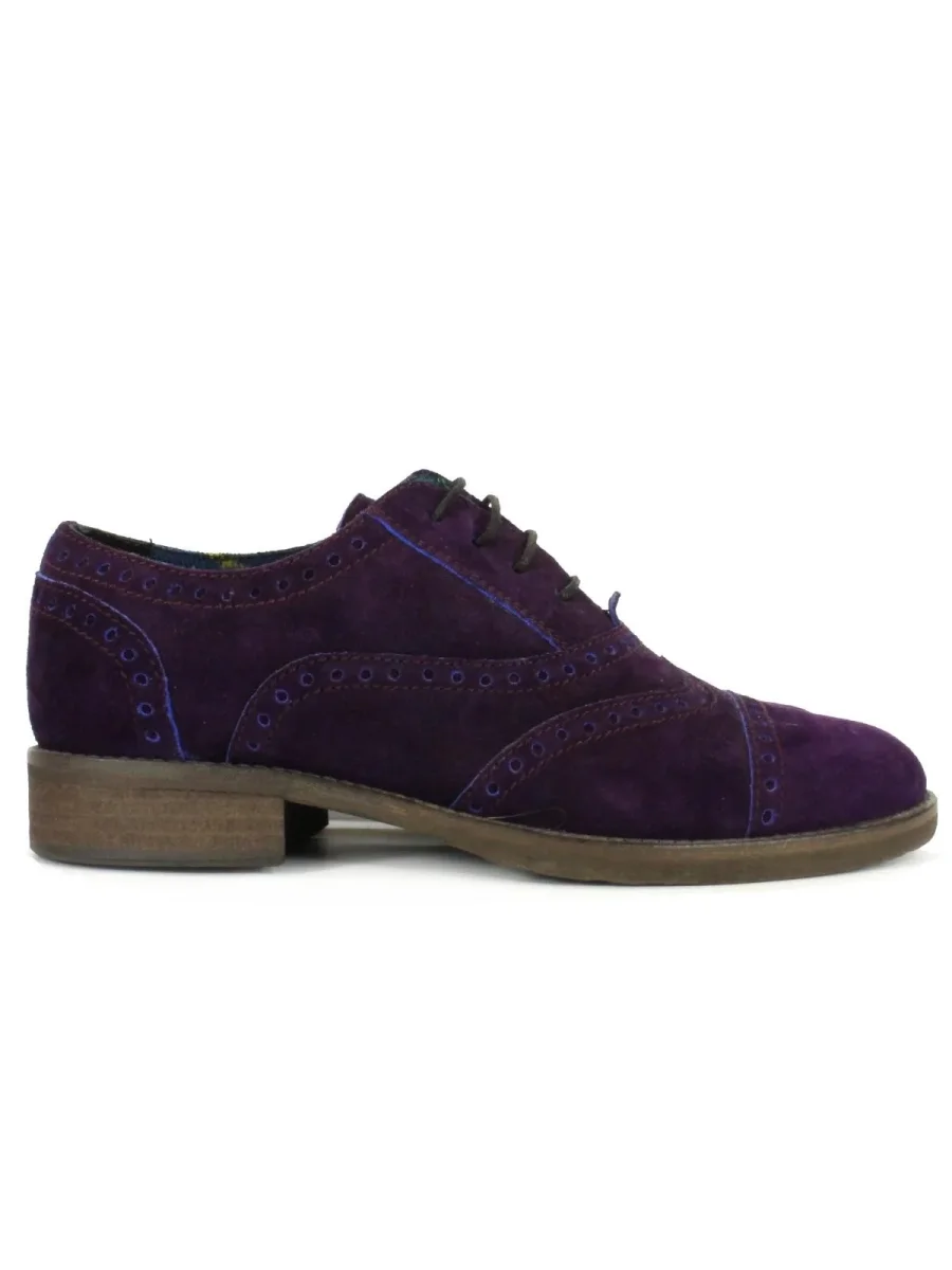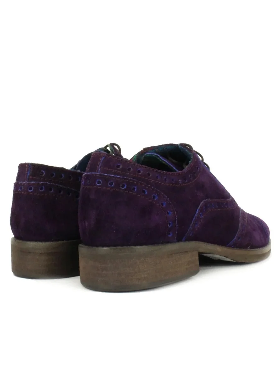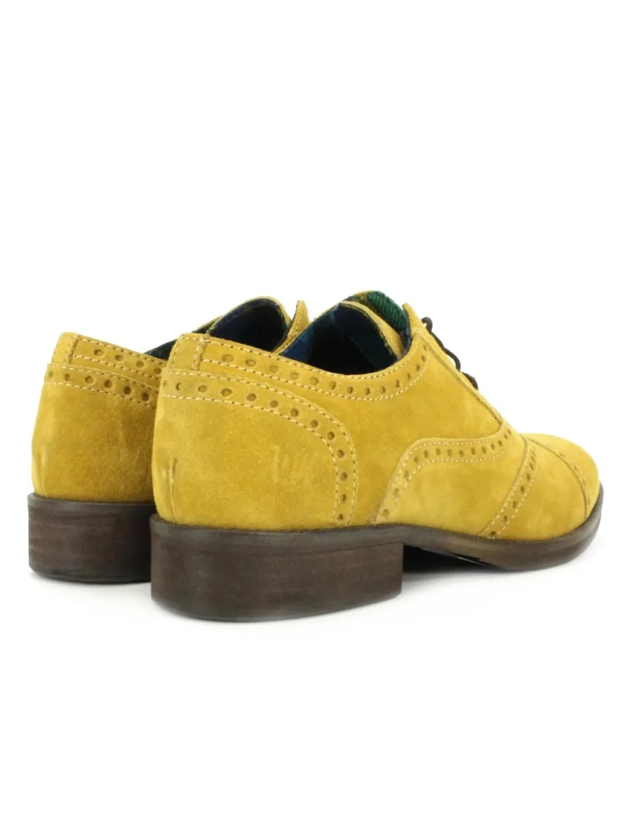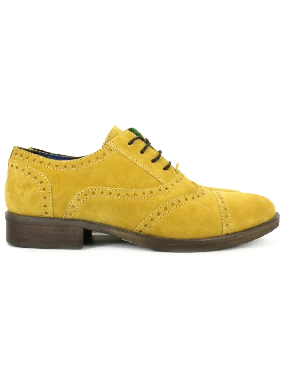 Scarpe donna stringate, modello stile inglese, in camoscio, con suola cuoio.