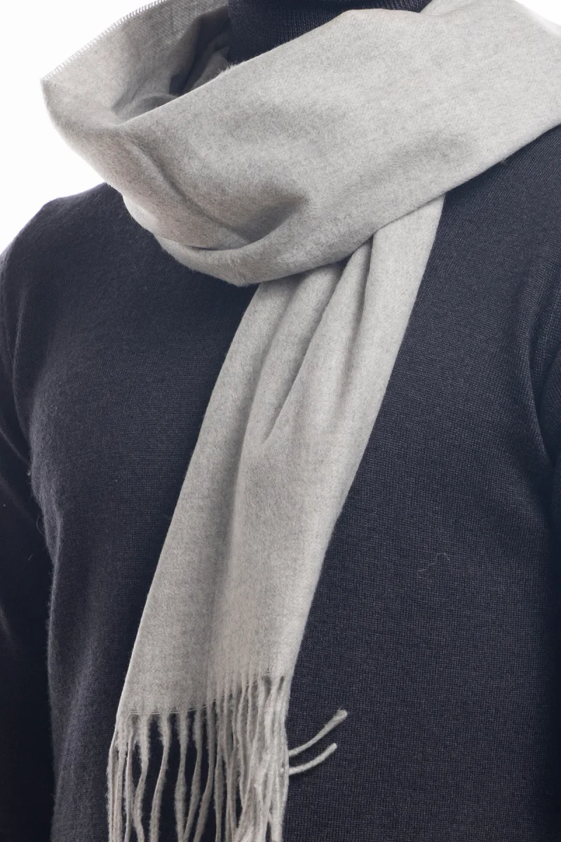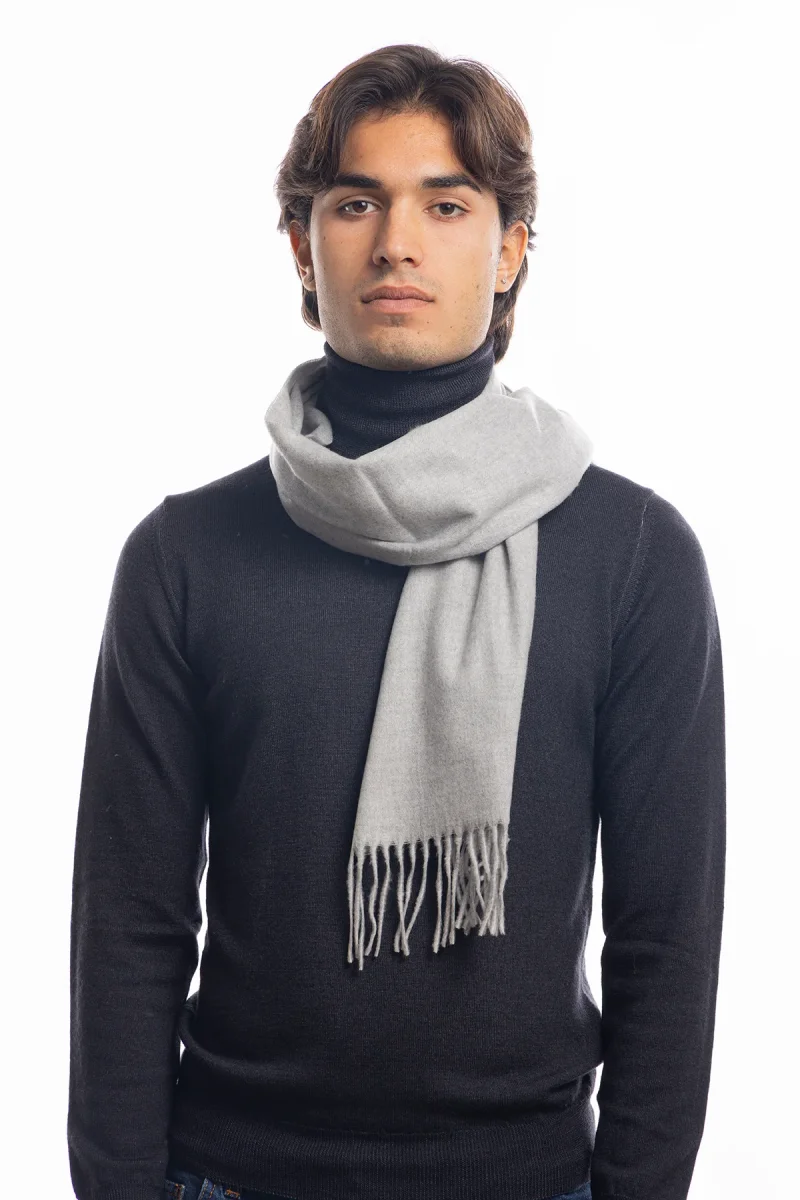 Sciarpa uomo grigio medio invernale effetto lana cashmere con frange