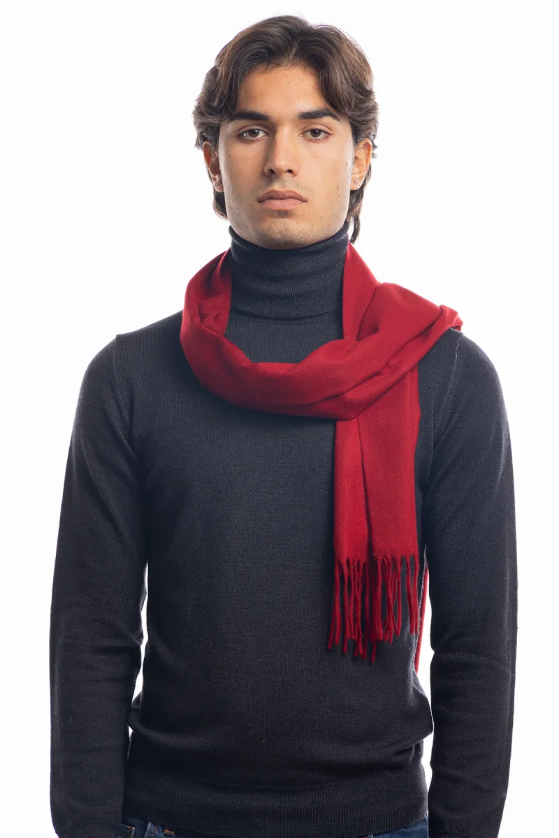 Sciarpa uomo rossa invernale effetto lana cashmere con frange