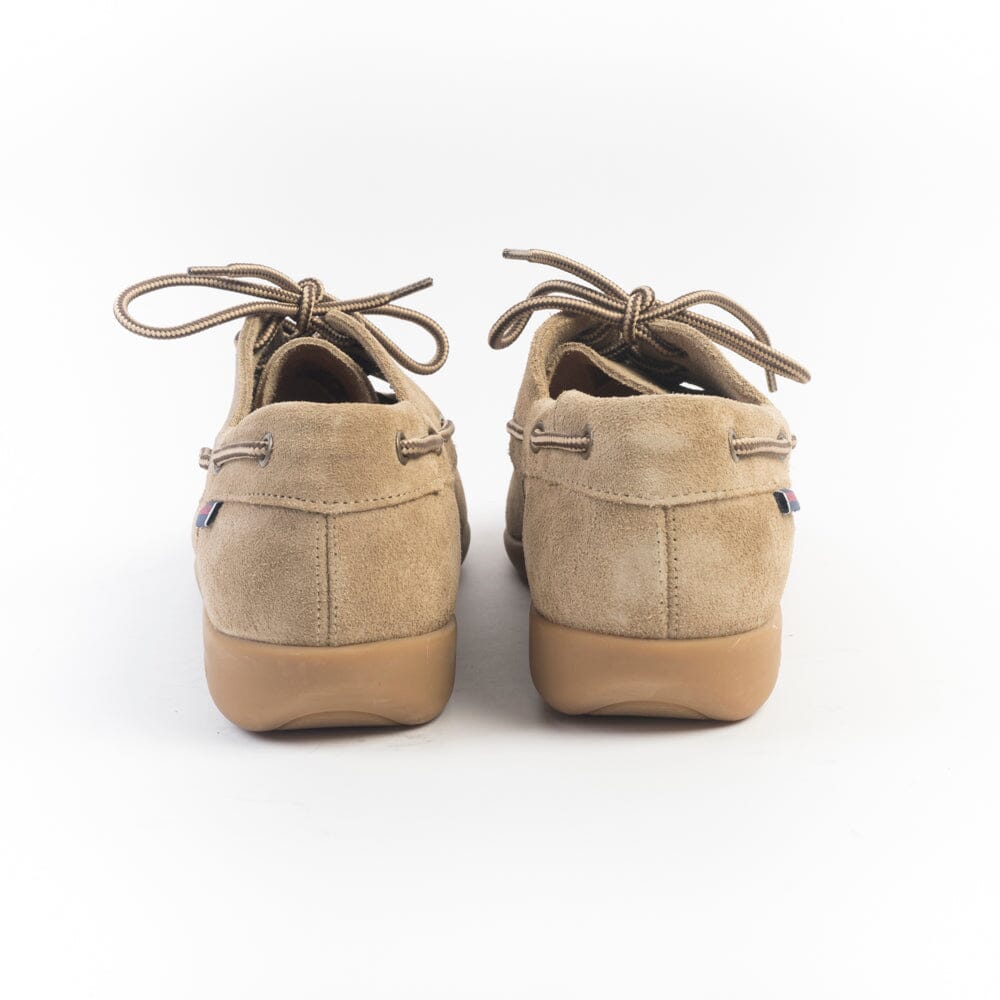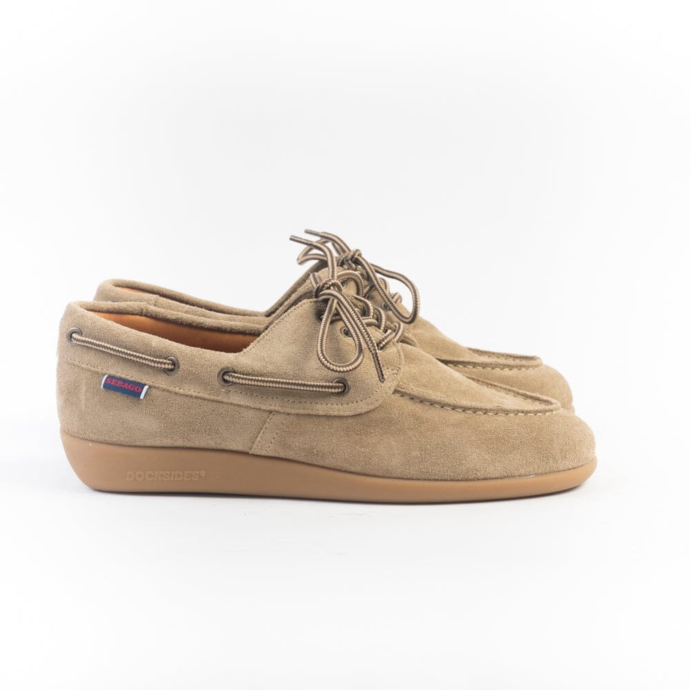 Scarpa da barca Sebago ispirata alla più grande leggenda vivente della vela americana: Gary Jobson. Realizzata in pelle scamosciata a grana fine e cucita a mano con la migliore lavorazione artigianale, di colore tortora. Tre fori, lacci in corda in nuance. Progettata per la vita all’aria aperta. Suola in gomma naturale.