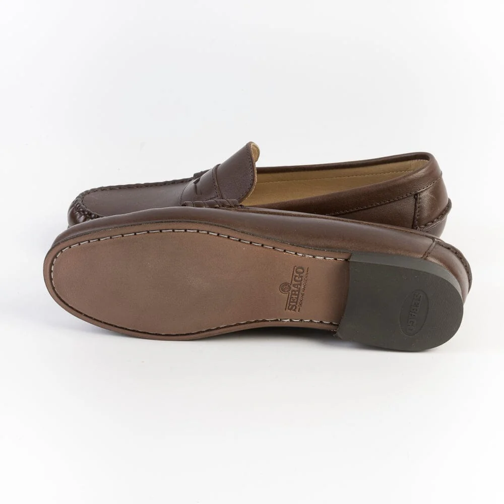Mocassino di Sebago, realizzato in pelle pieno fiore di colore testa di moro e cucito a mano con la migliore lavorazione artigianale, tacco modellato in gomma e suola in cuoio trattato per offrire resistenza, flessibilità e impermeabilità.