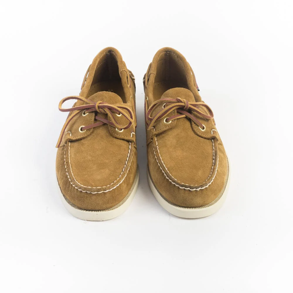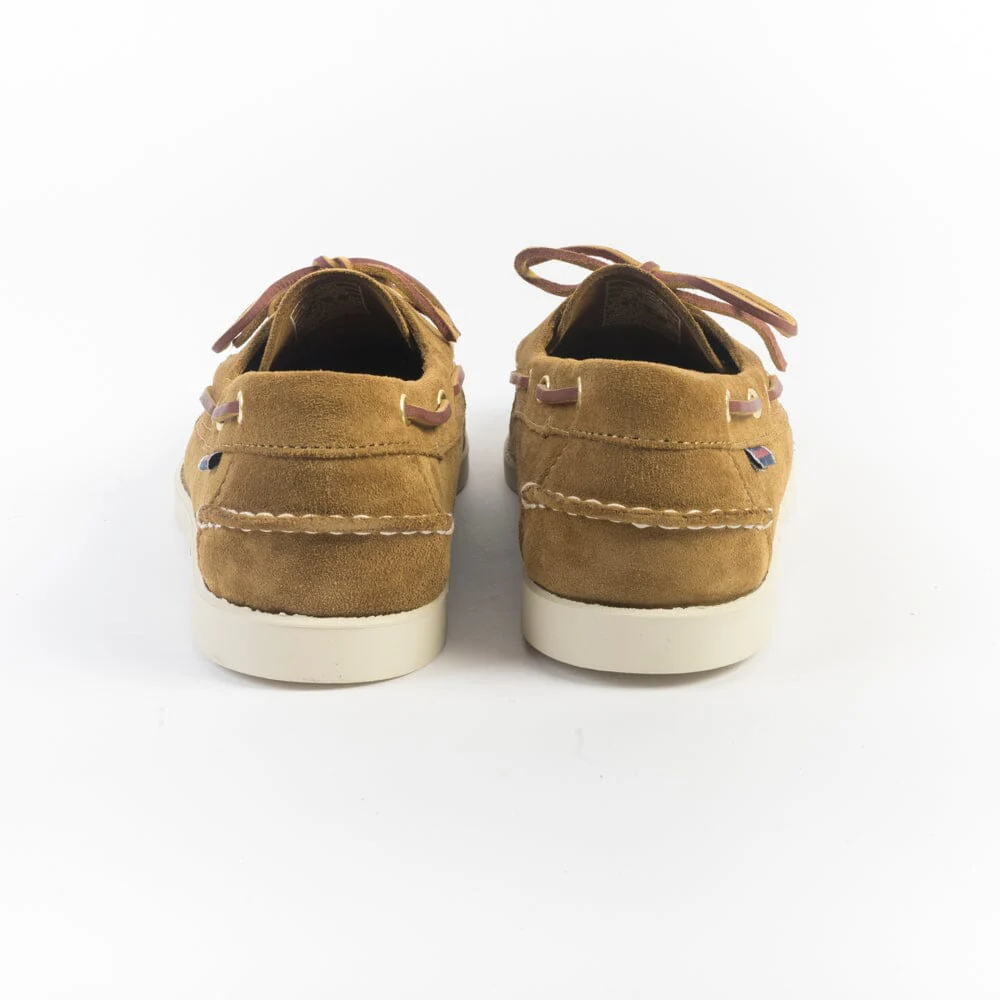 Scarpa da barca Sebago, facente parte della collezione OPERA. In particolare, la collezione viene creata utilizzando la parte più pregiata e morbida del pellame; inizialmente conciata al vegetale e successivamente conciata al cromo per donare alla calzatura una morbidezza senza precedenti. La scarpa è cucita a mano con la migliore lavorazione artigianale in pelle rovesciata di colore ocra. Creata per avere un look esclusivo e durare a lungo, è dotata di soletta in pelle, sistema di allacciatura a 360° in camoscio in nuance e suola non- marking in gomma striata antiscivolo, per offrire una presa stabile in tutte le condizioni atmosferiche.