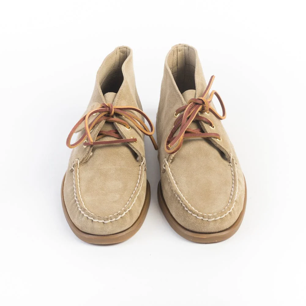 Scarpa da barca Sebago, facente parte della collezione OPERA dalla forma a polacchino. La scarpa è cucita a mano con la migliore lavorazione artigianale in pelle rovesciata di colore tortora. Creata per avere un look esclusivo e durare a lungo, è dotata di soletta in pelle, sistema di allacciatura a 360° in camoscio in nuance e suola non – marking in gomma striata antiscivolo, per offrire una presa stabile in tutte le condizioni atmosferiche.