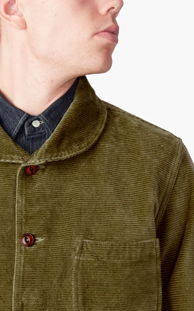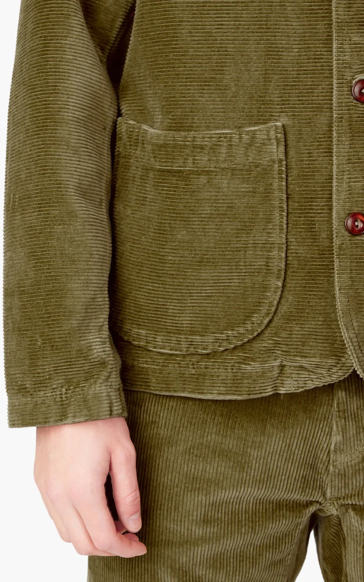German made corduroy (by Kindermann, since 1885). Cut and sewn in Italy. Patch pockets. Shawl collar.