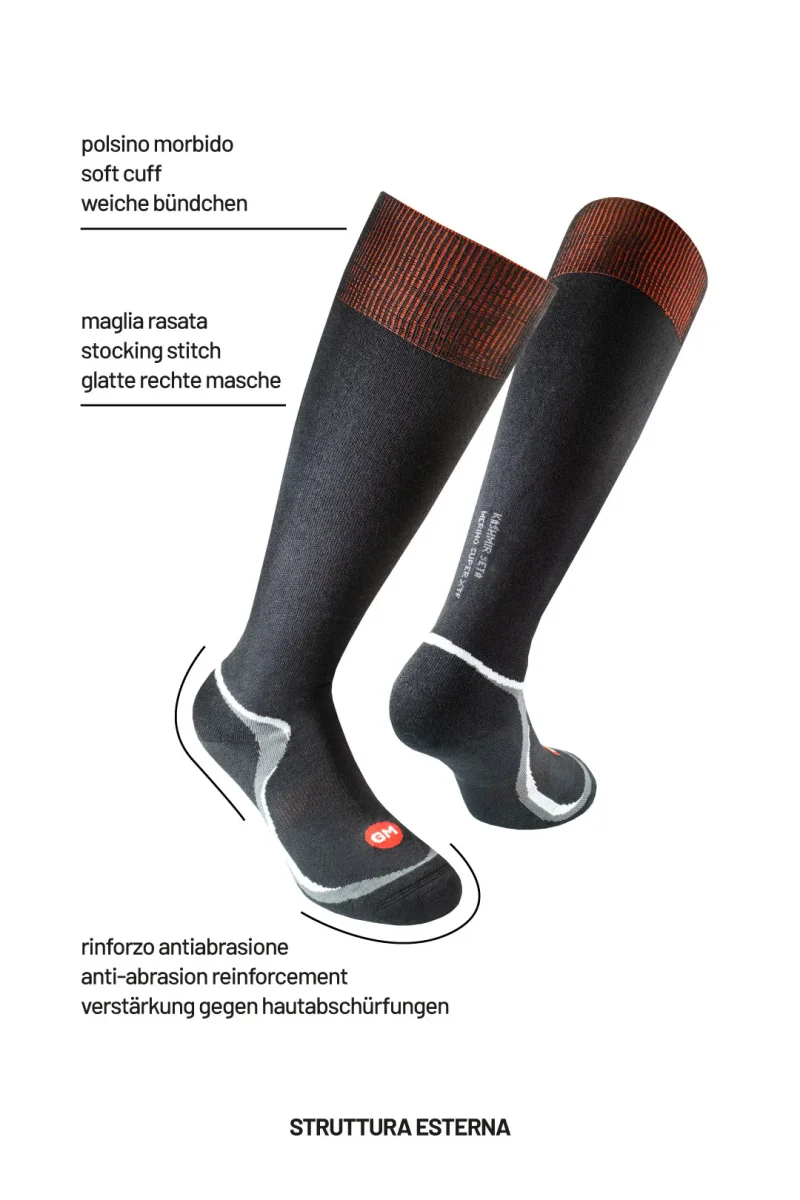 Calza top di gamma in versione Heritage con vestibilità e comfort di calzata imbattibili ed un’eccezionale capacità di termoregolazione. La morbidezza e l’accoglienza degli eccellenti filati impiegati si uniscono a una sapiente costruzione tecnica per garantire stabilità nello scarpone e una duratura resistenza all’abrasione. Per chi cerca la qualità assoluta unita a una performance sorprendente.