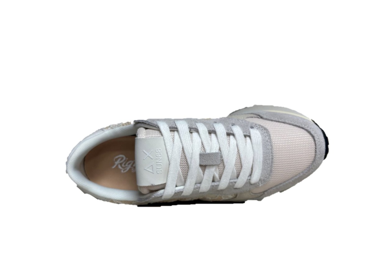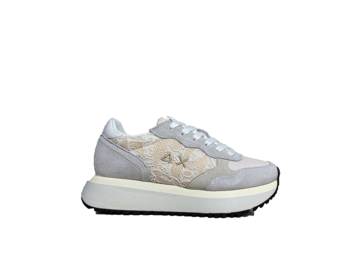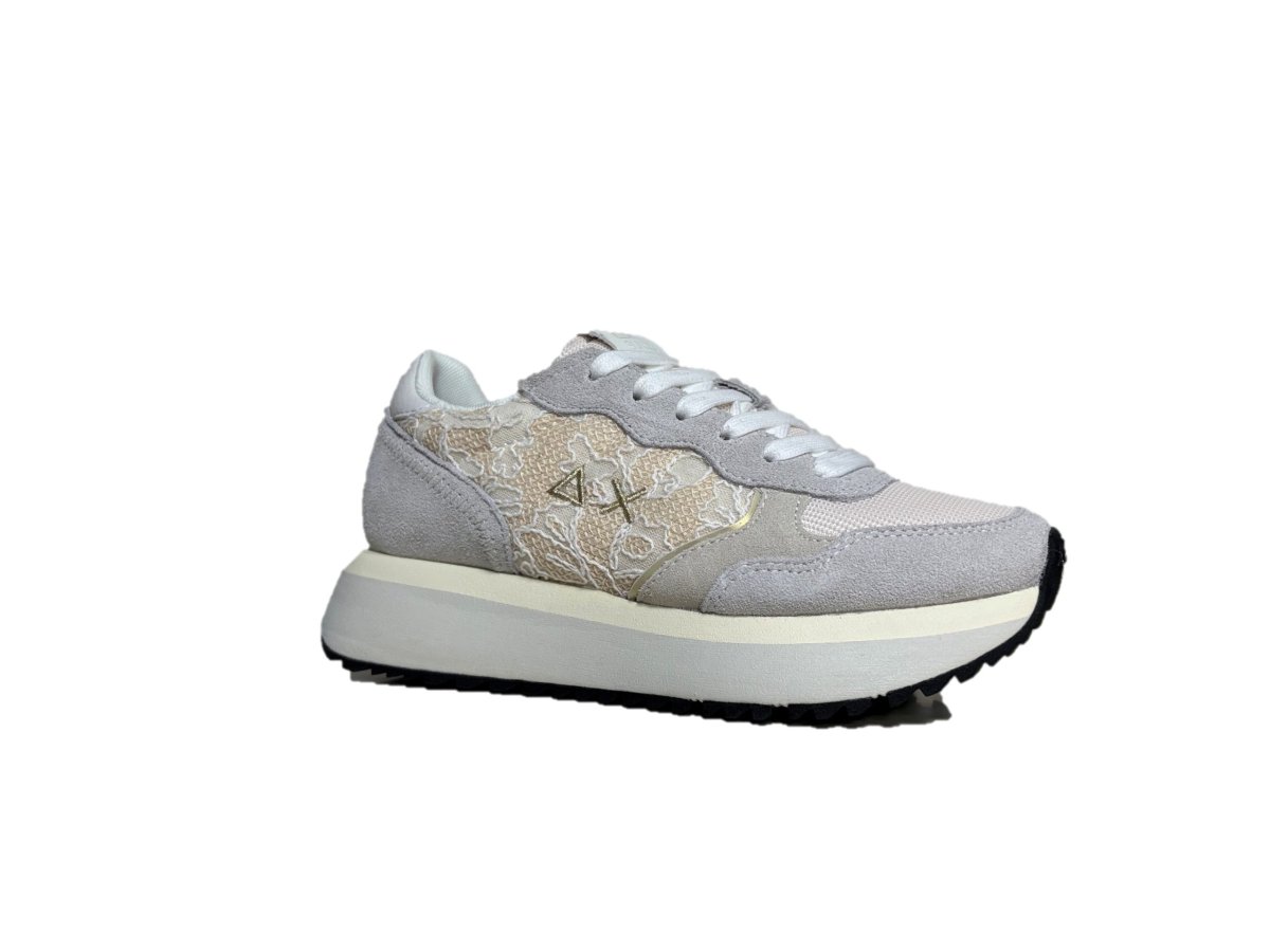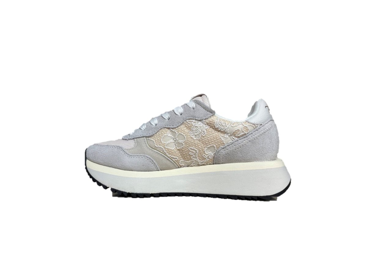 Sneaker Big Ally Flower in suede e mesh bianco panna