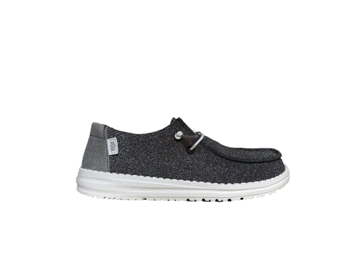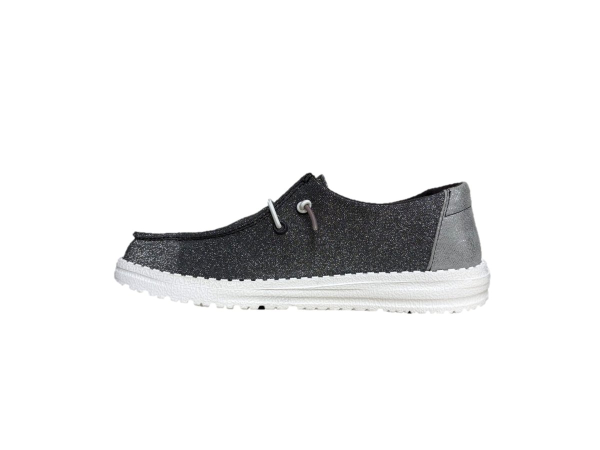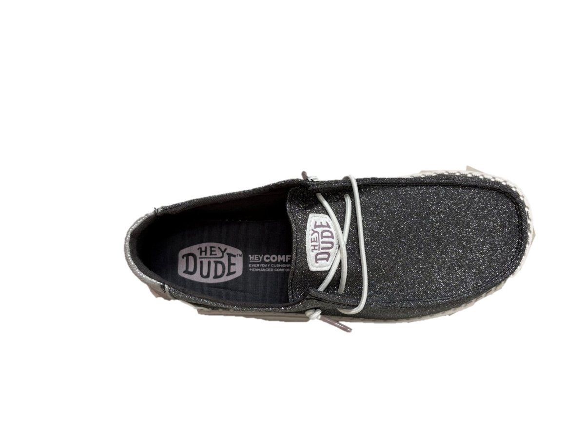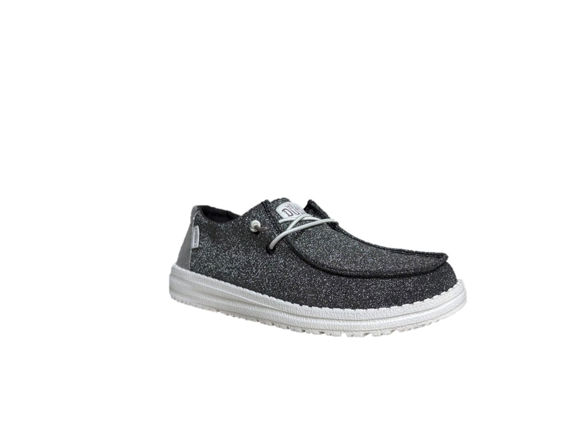 - Tomaia in tessuto con lacci intrecciati e paillettes
