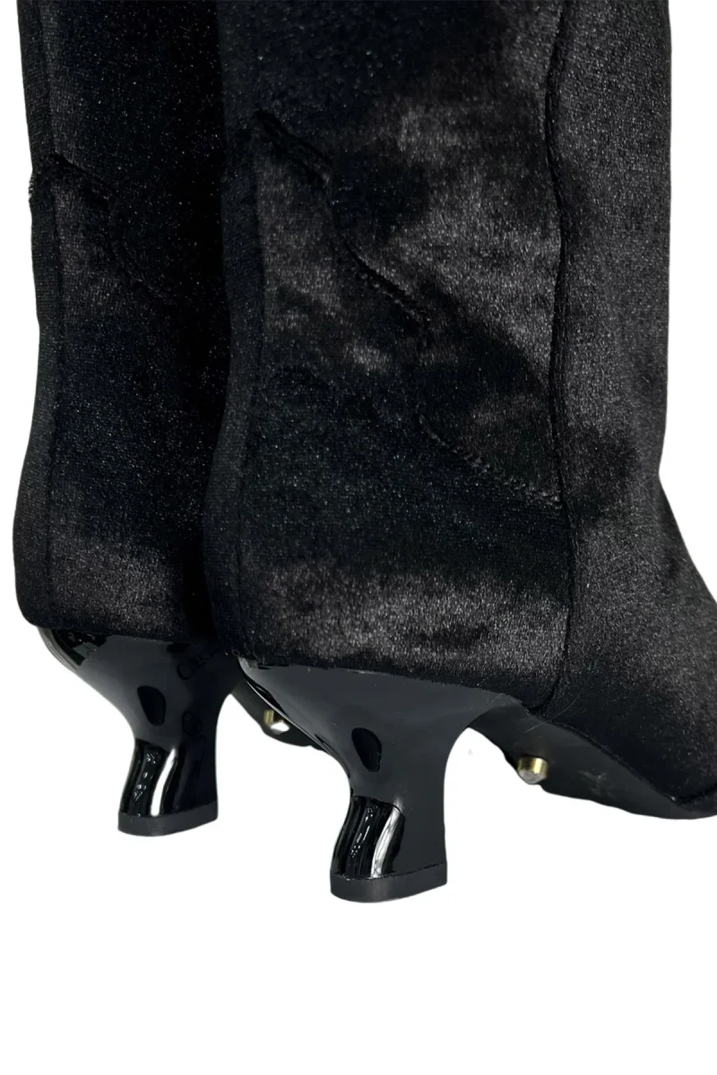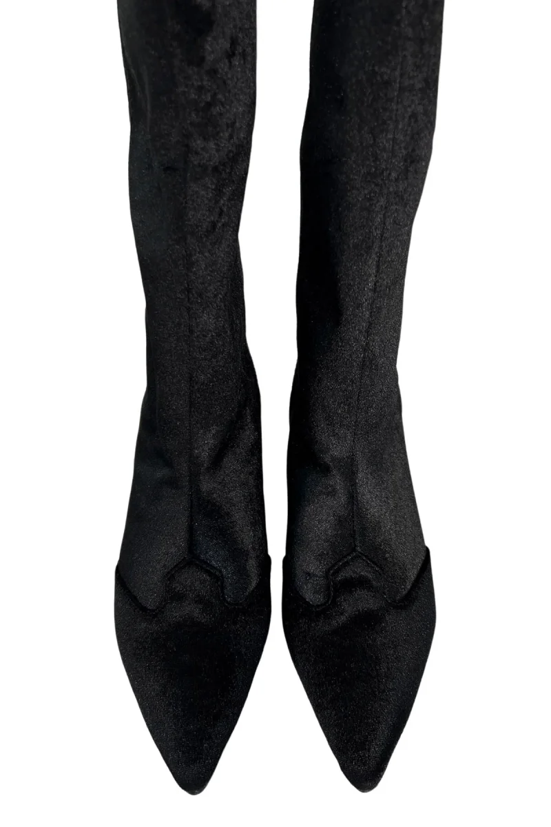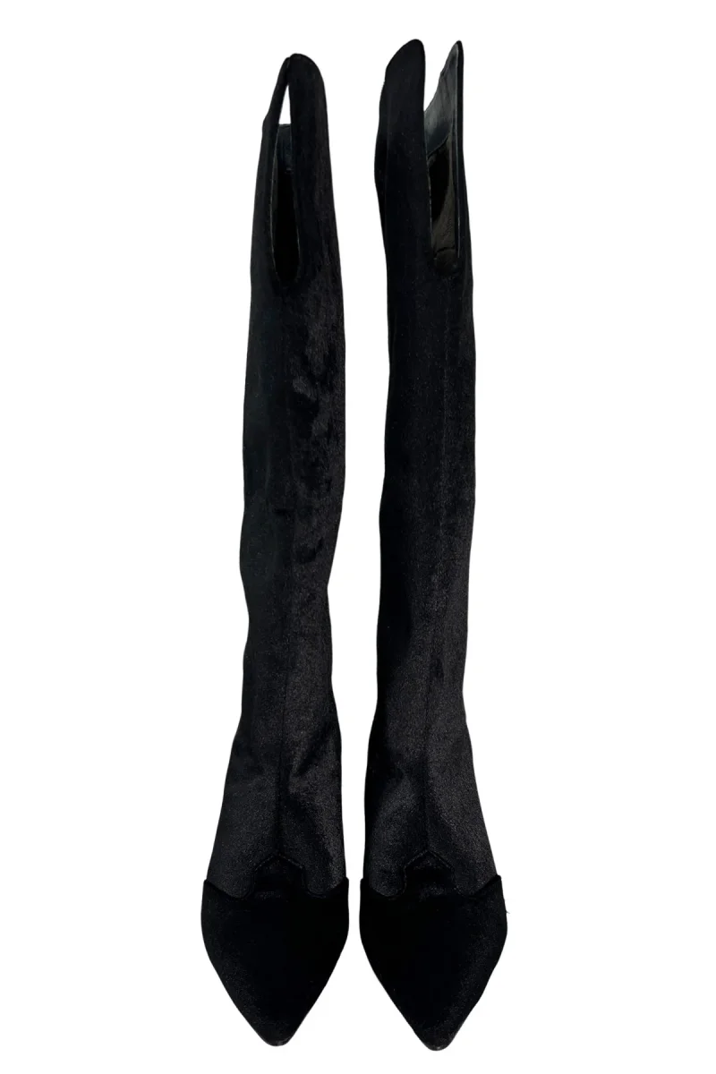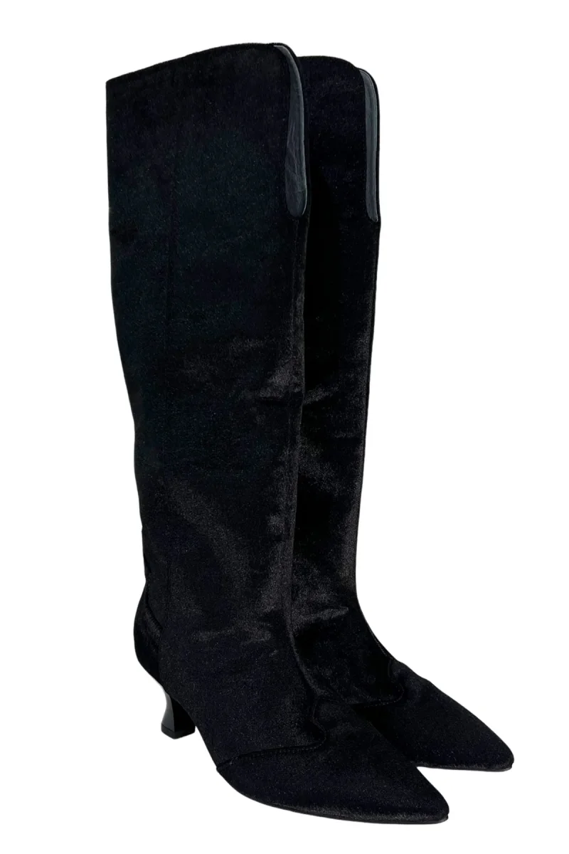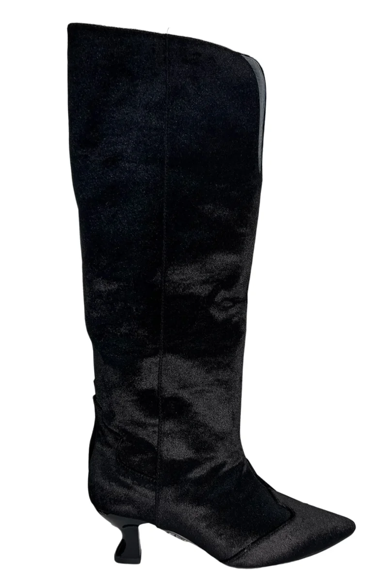 Stivale donna in velluto altezza gambale 42 cm punta e tacco geometrico 6 cm