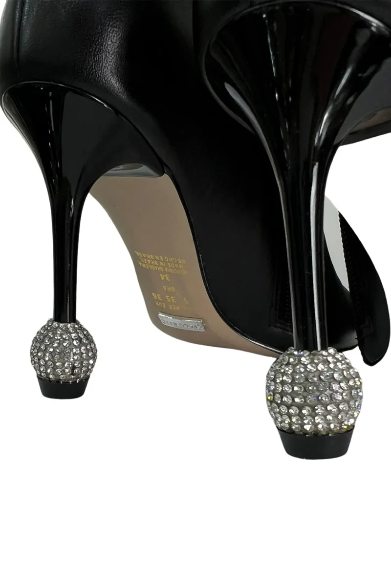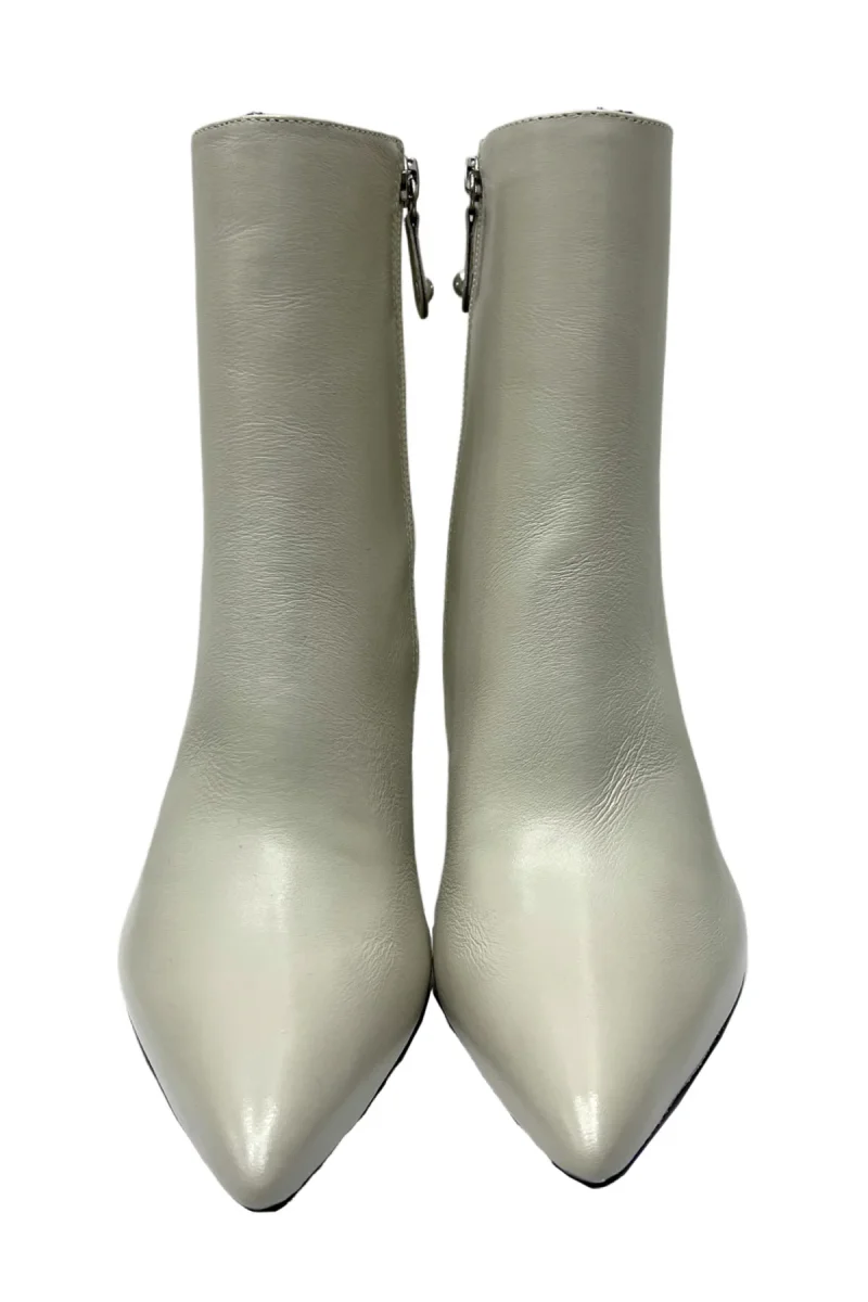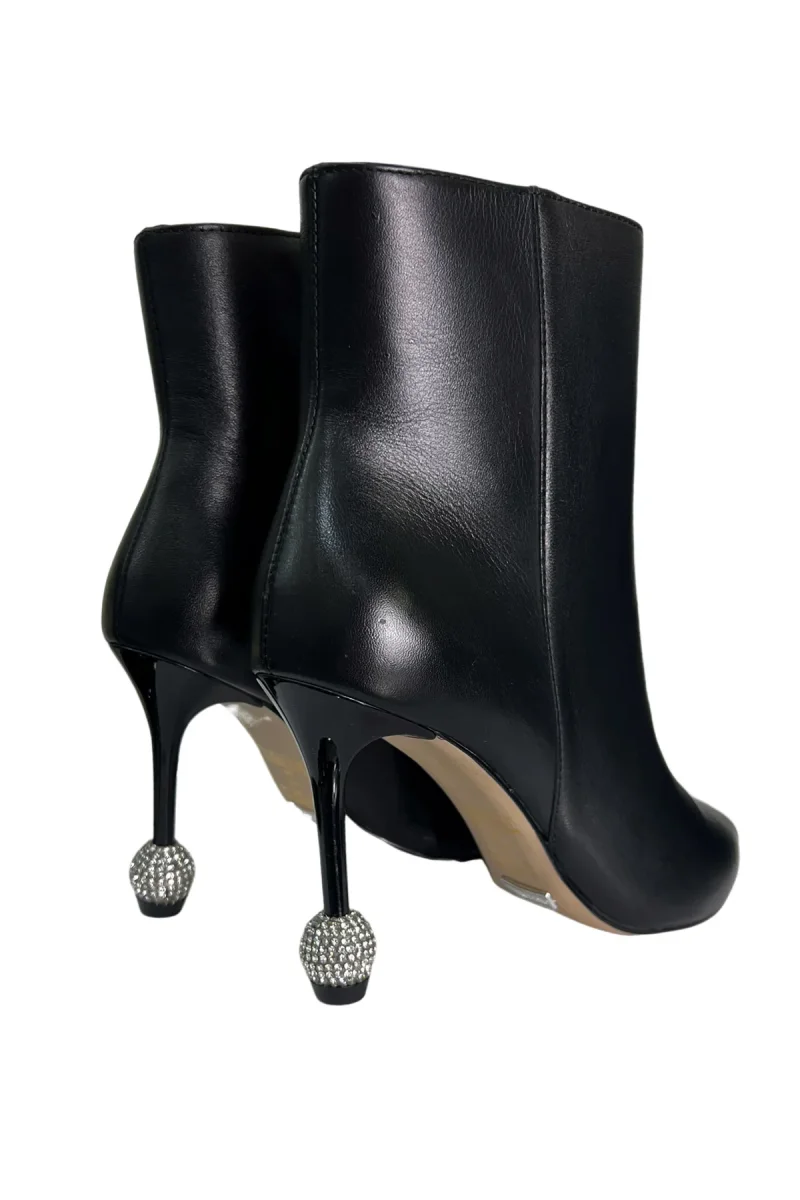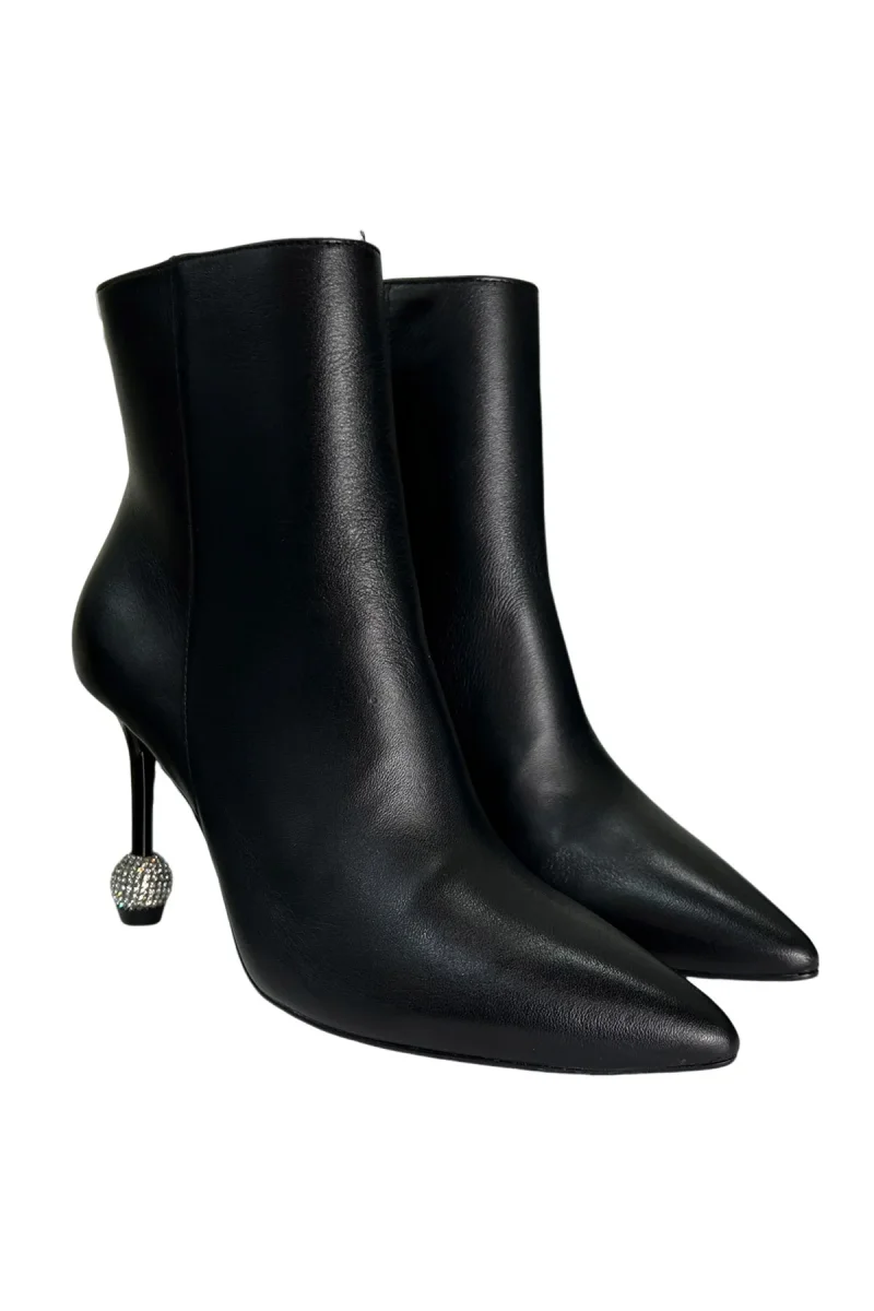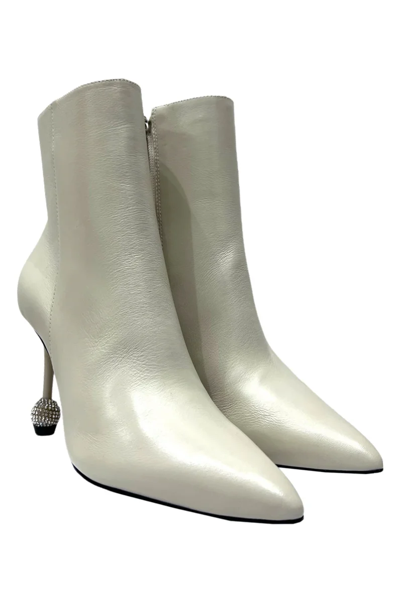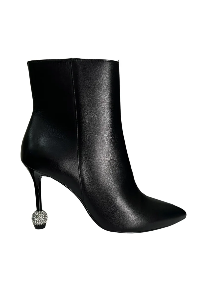 Stivaletto donna in pelle chiusura cerniera interna punta e tacco a spillo 9 cm dettaglio sfera strass