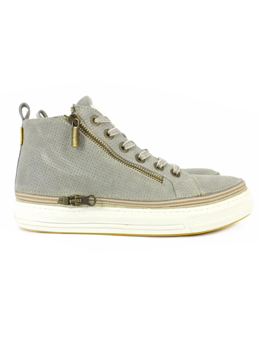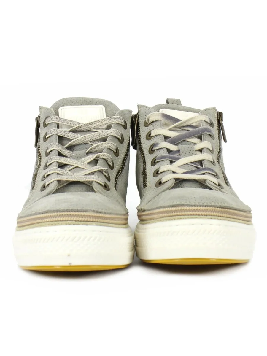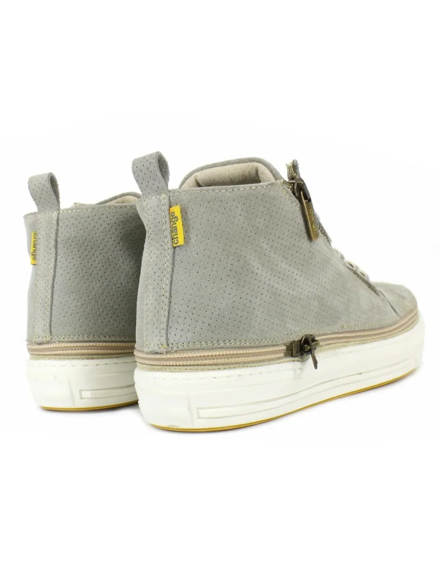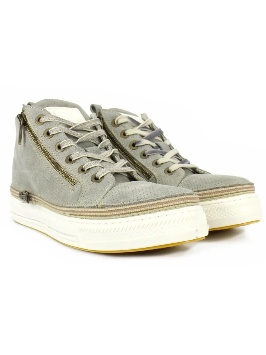 Stivaletto uomo in camoscio beige con zip e suola bianca laccio effetto vintage