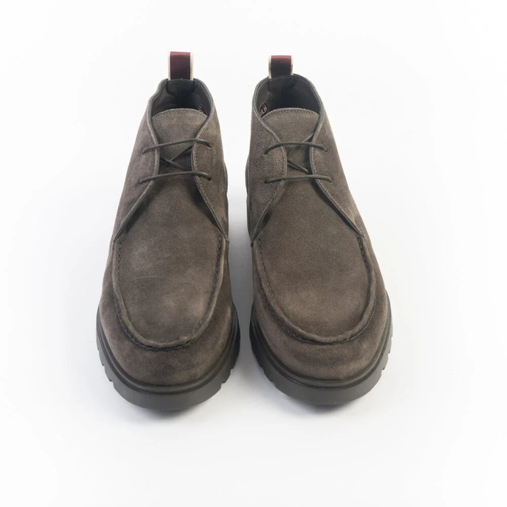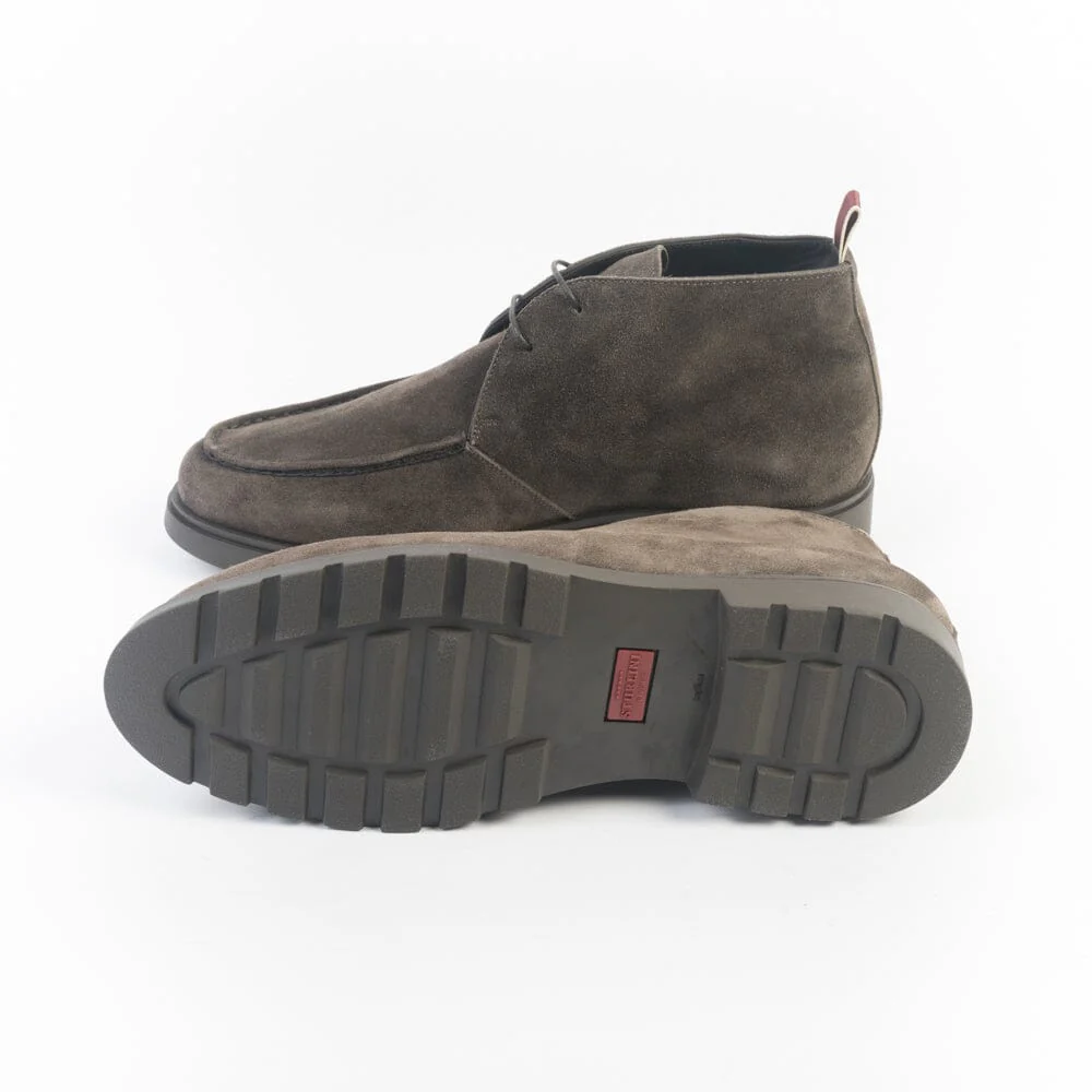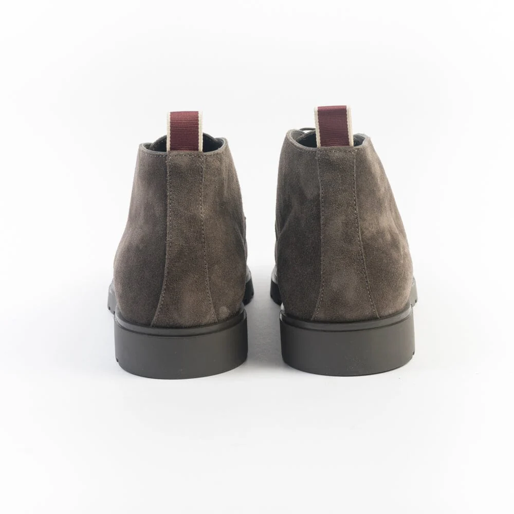 Polacchino alla caviglia di Sturlini, realizzato in morbido camoscio di colore marrone con cucitura su tomaia. Fettuccia in cotone sul retro per agevolare la calzata. Allacciatura due fori e lacci in cotone cerato in nuance. Suola in gomma.