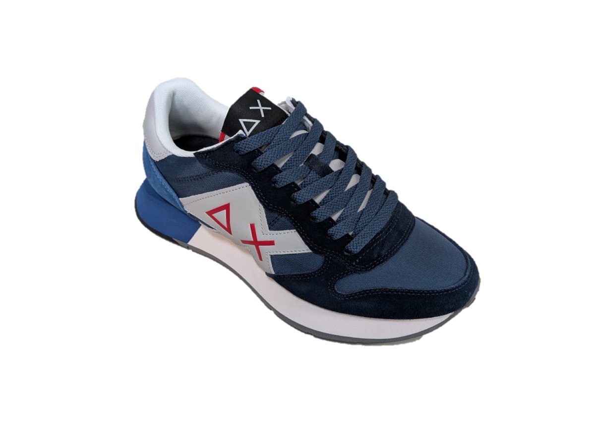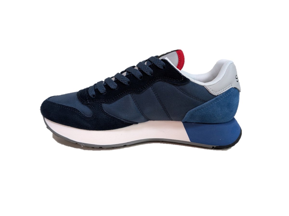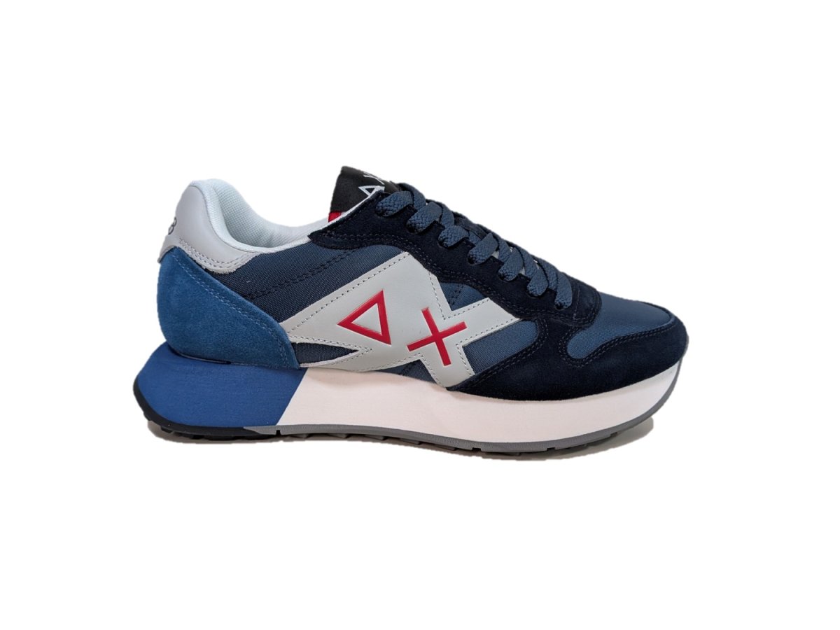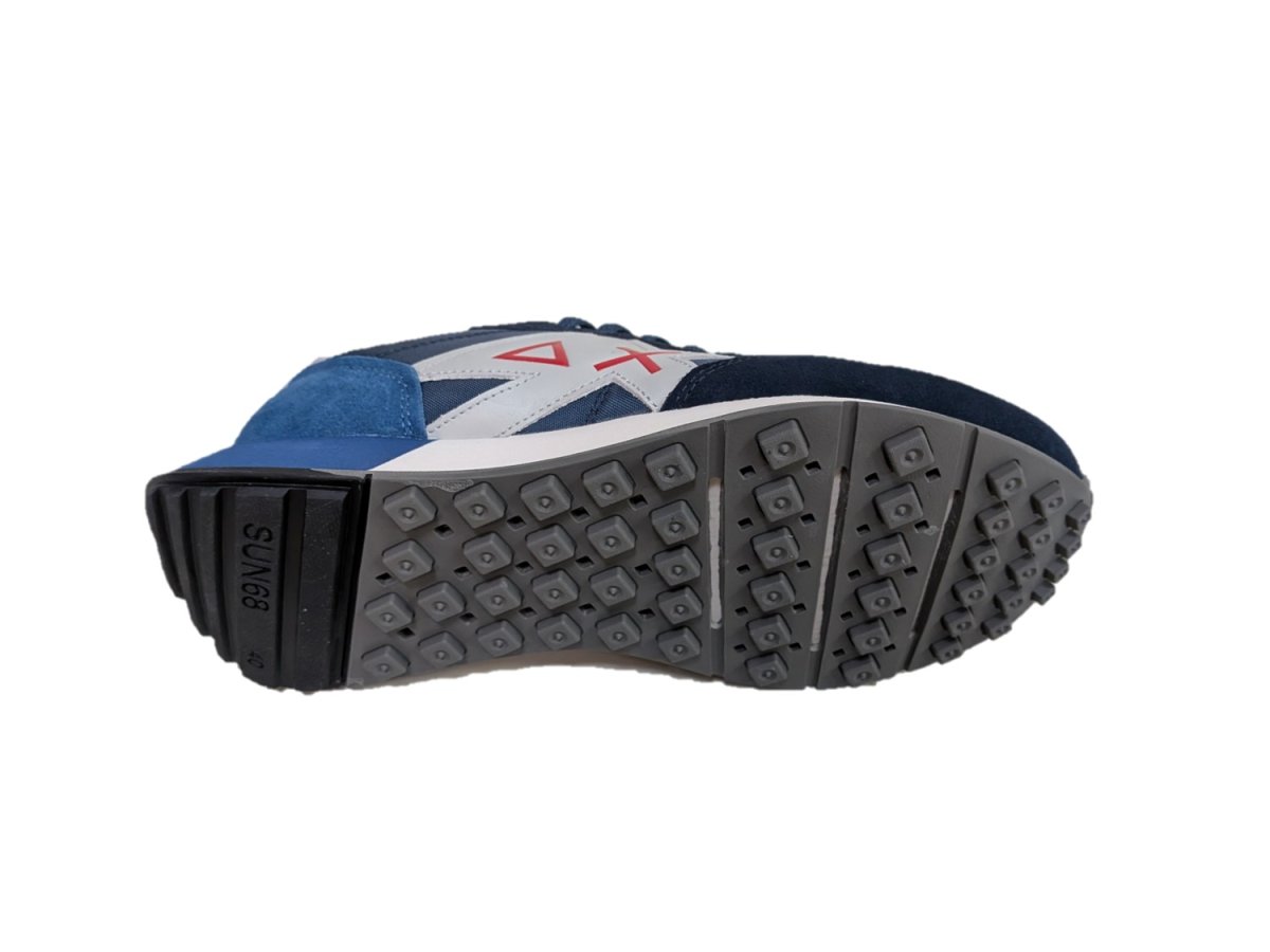 Sneakers in pelle scamosciata e tessuto colore blu avio, suola in gomma, fodera in tessuto