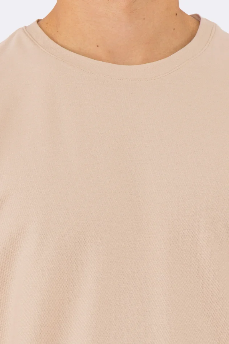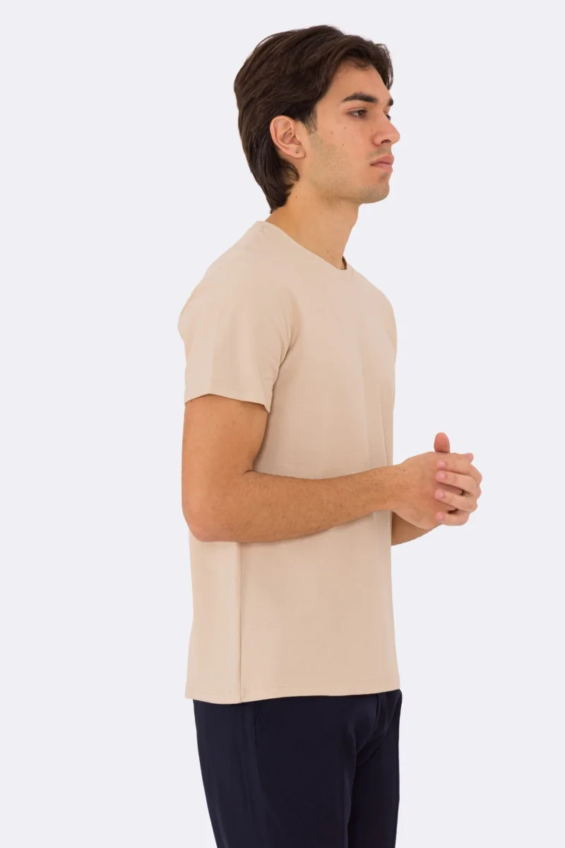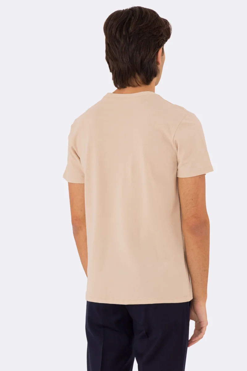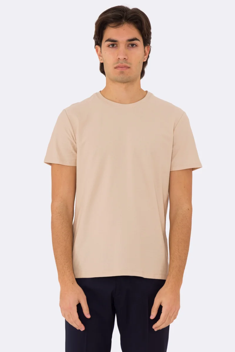 T-shirt da uomo Beige in piquet 100% cotone mezza manica slim fit tinta unita Made In Italy