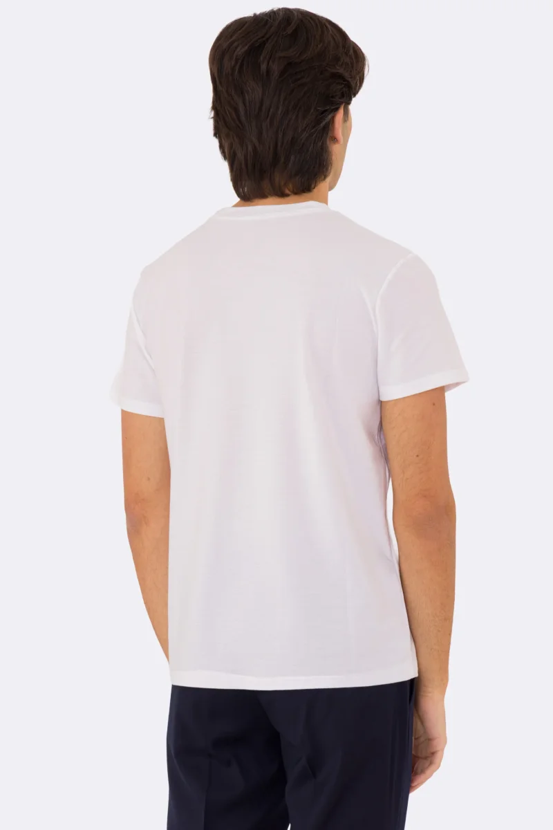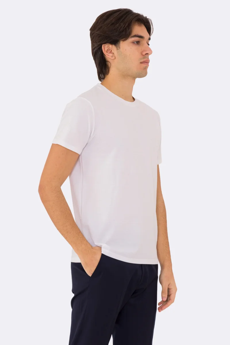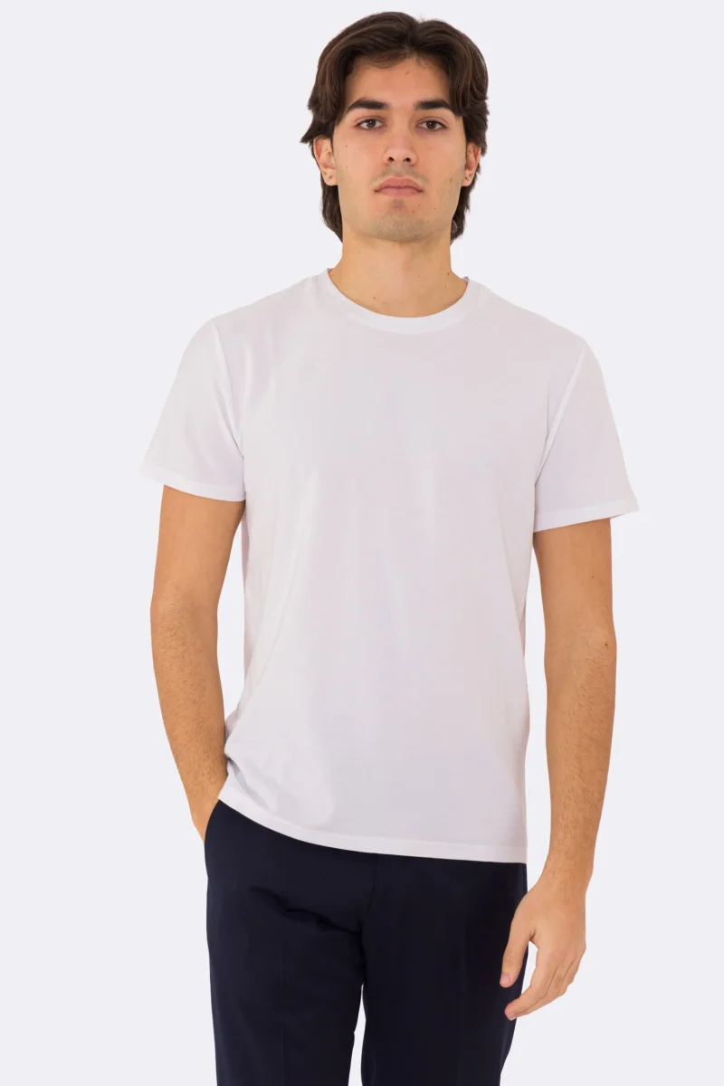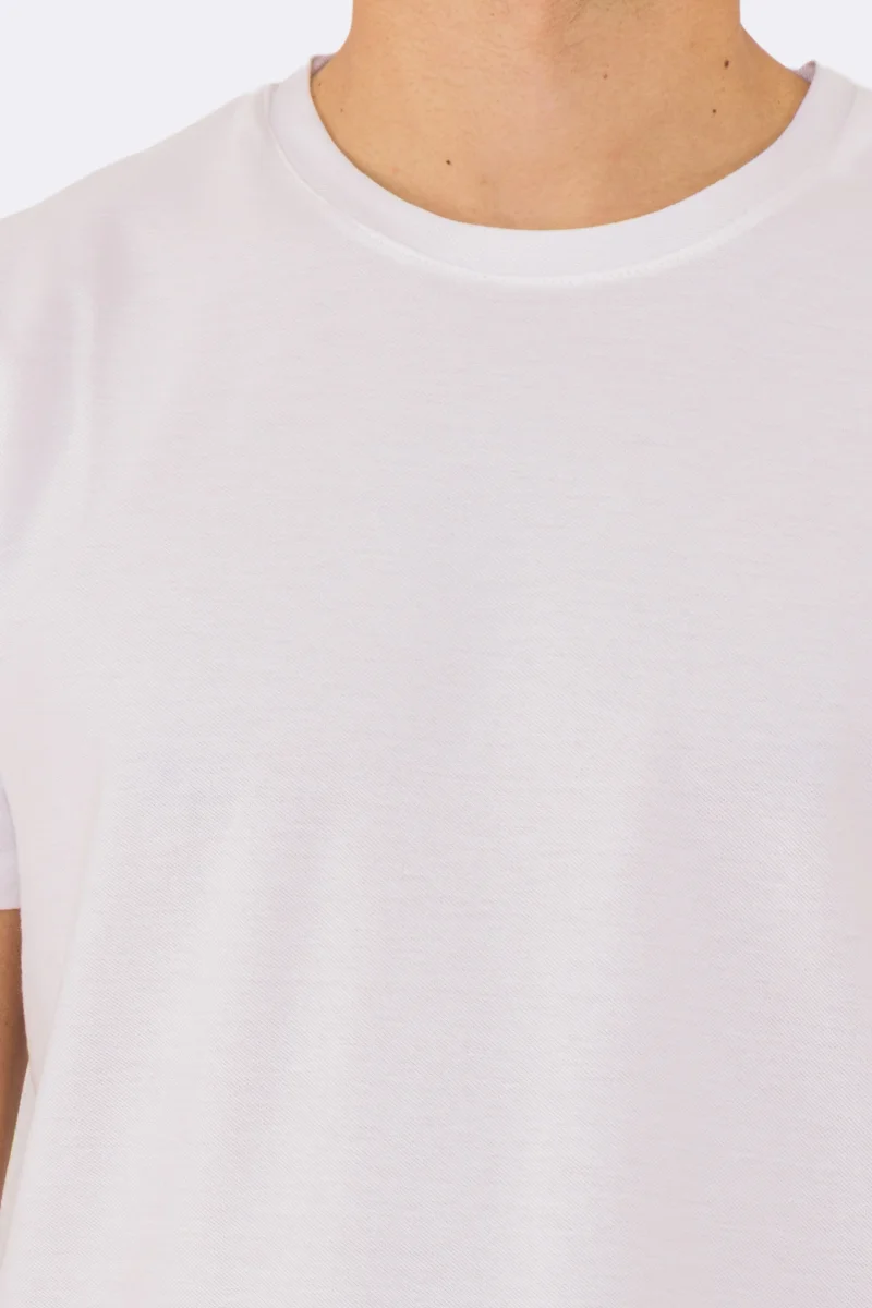 T-shirt da uomo Bianca in piquet 100% cotone mezza manica slim fit tinta unita Made In Italy