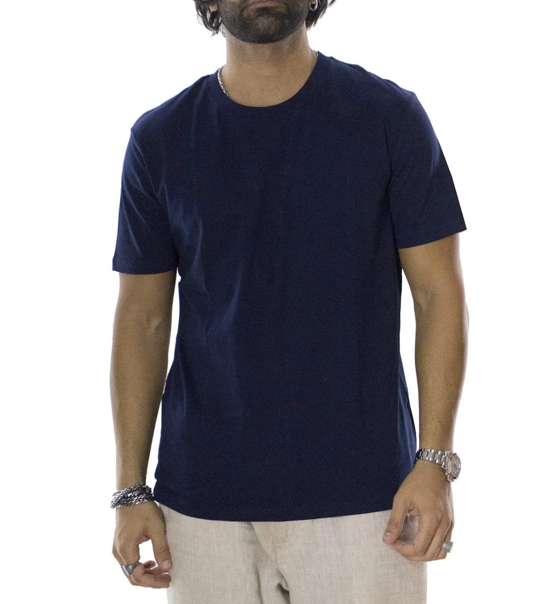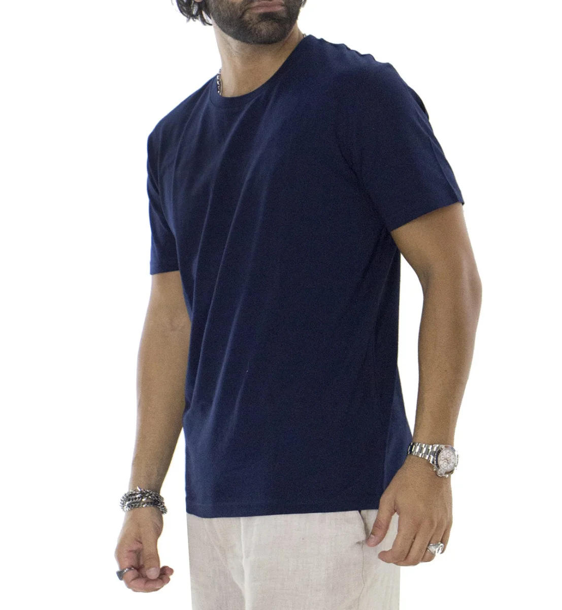 T-SHIRT UOMO BLU IN COTONE ORGANICO TINTA UNITA REGULAR FIT ELASTICIZZATA GIROCOLLO