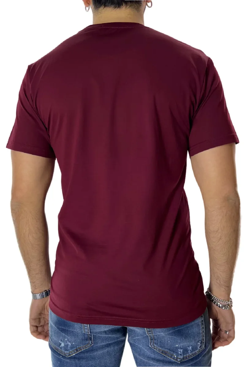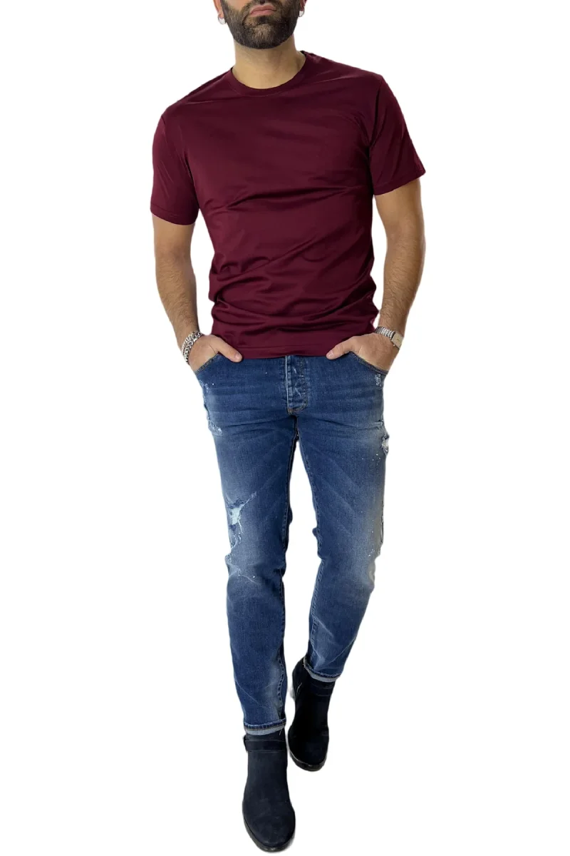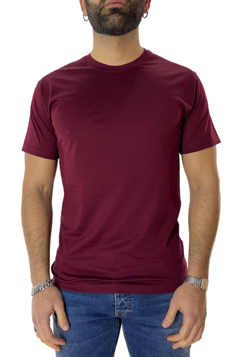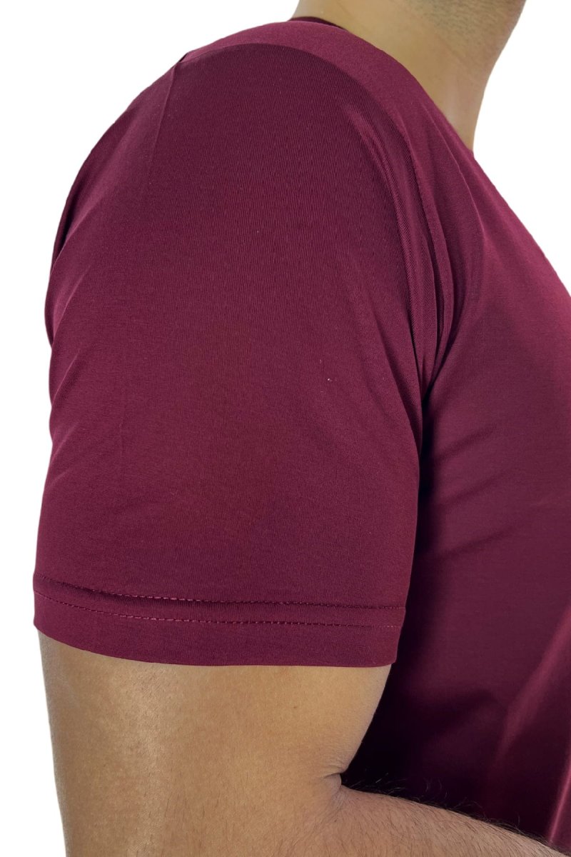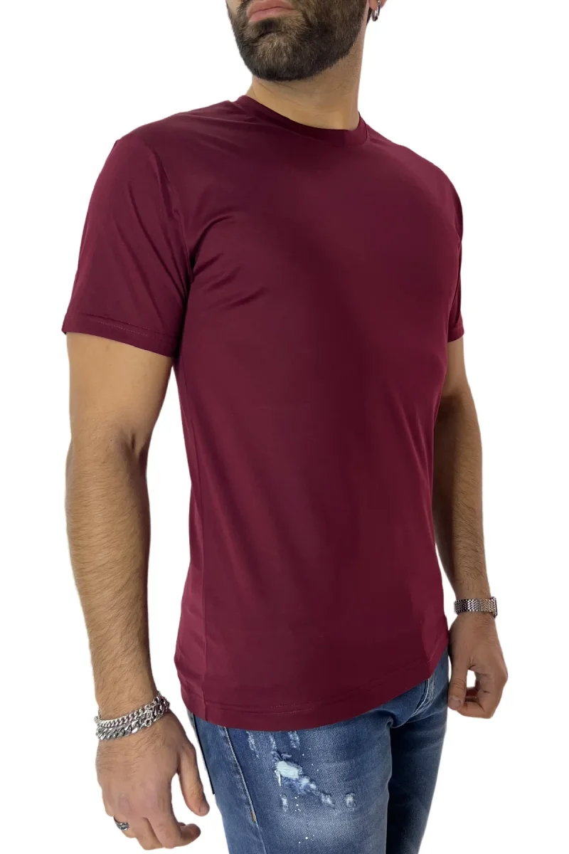 T-shirt da uomo bordeaux in cotone 100% Filo di scozia slim fit tinta unita Made In Italy