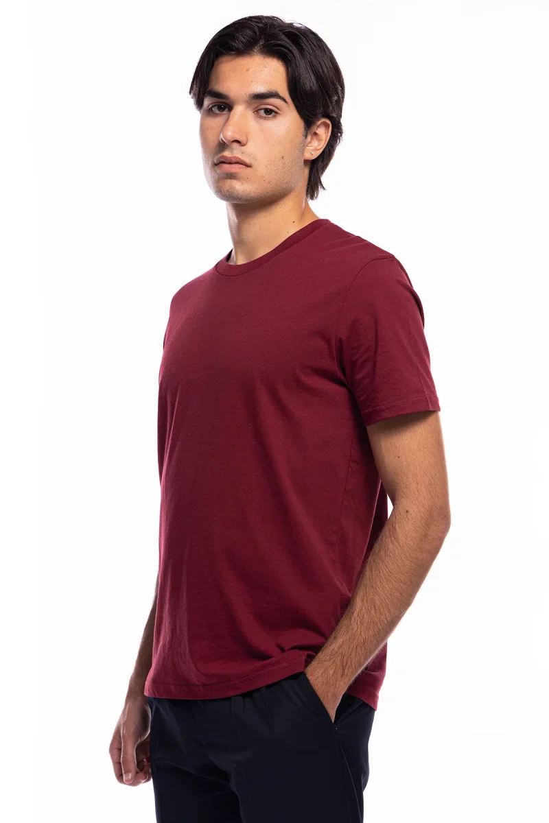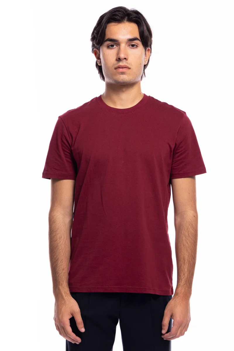 T-SHIRT UOMO BORDEAUX IN COTONE ORGANICO TINTA UNITA REGULAR FIT ELASTICIZZATA GIROCOLLO