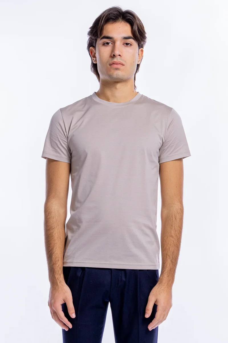 T-SHIRT DA UOMO FILO DI SCOZIA BEIGE 100% COTONE