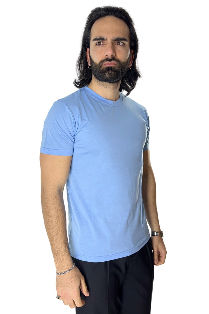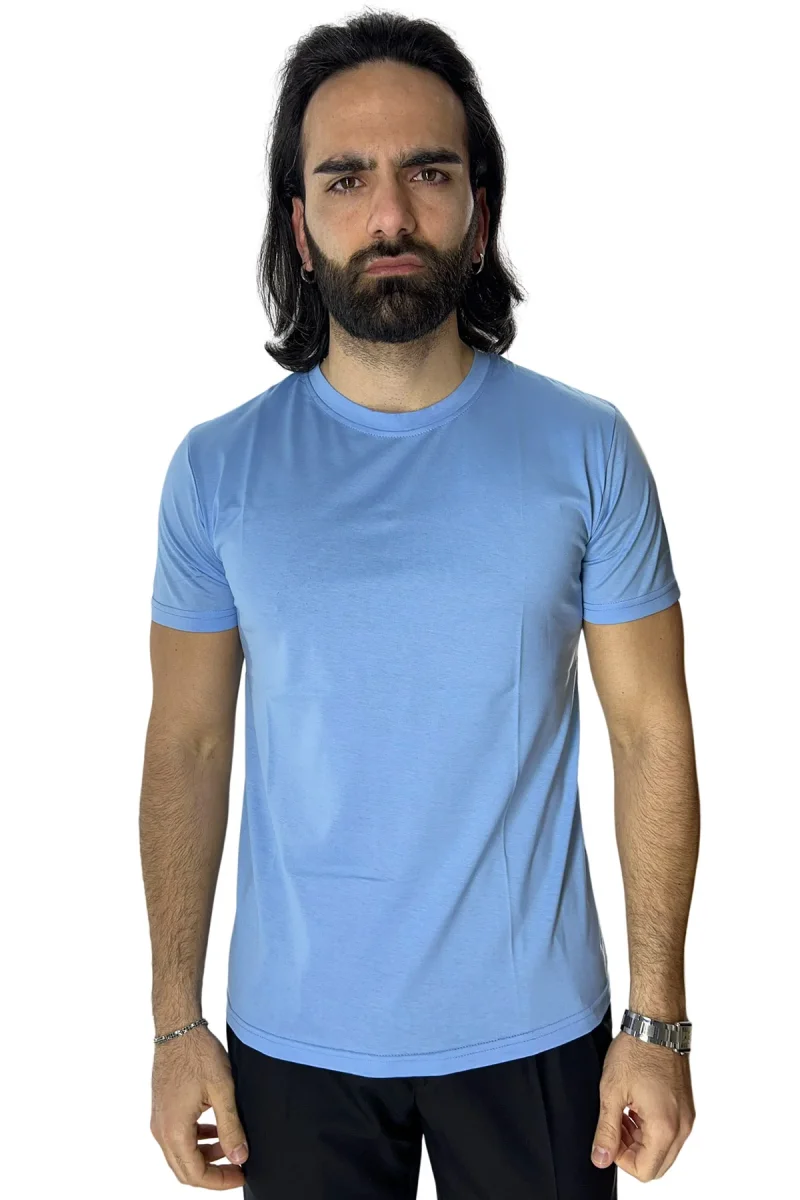 T-SHIRT DA UOMO FILO DI SCOZIA CELESTE 100% COTONE