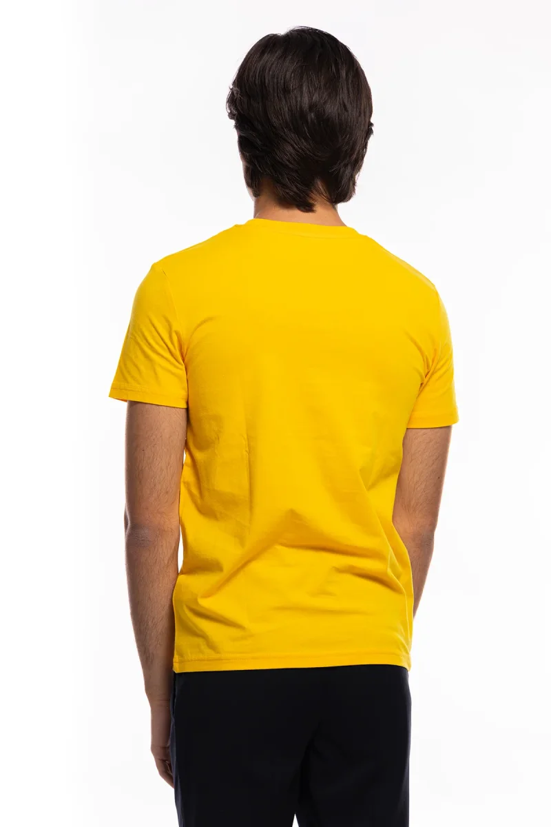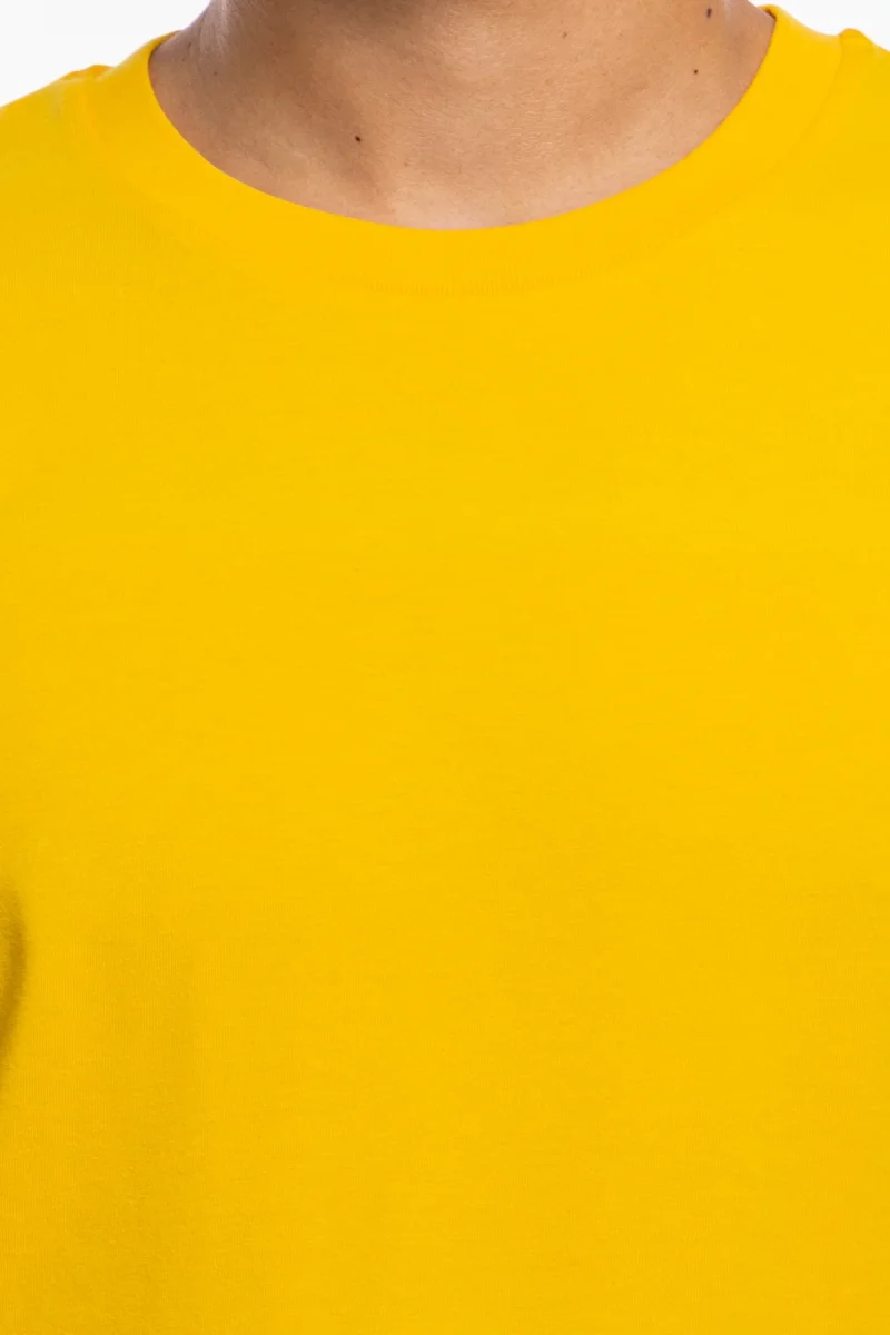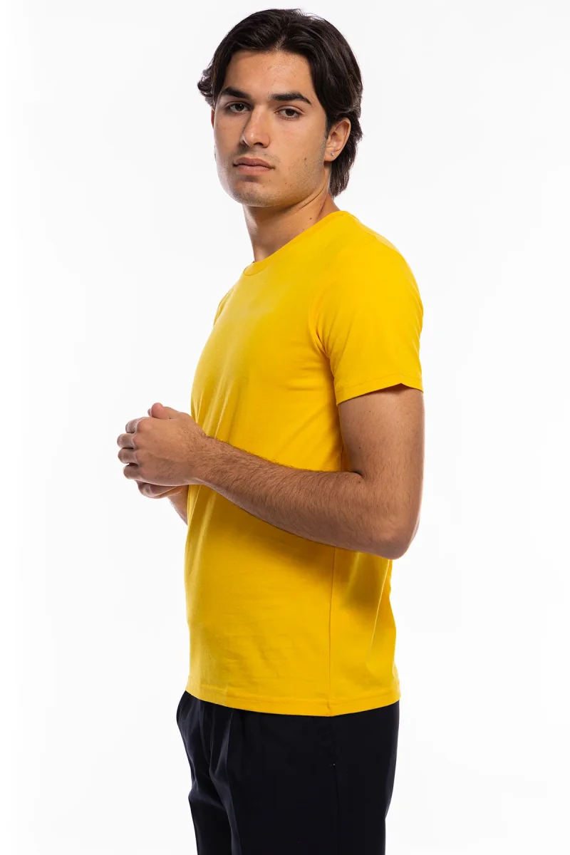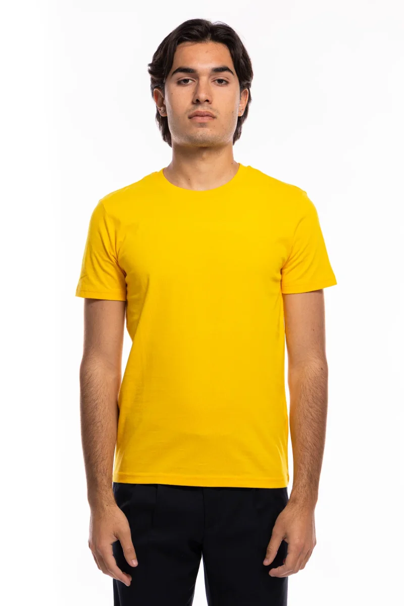 T-shirt da uomo in cotone organico tinta unita senape regular fit elasticizzata girocollo.