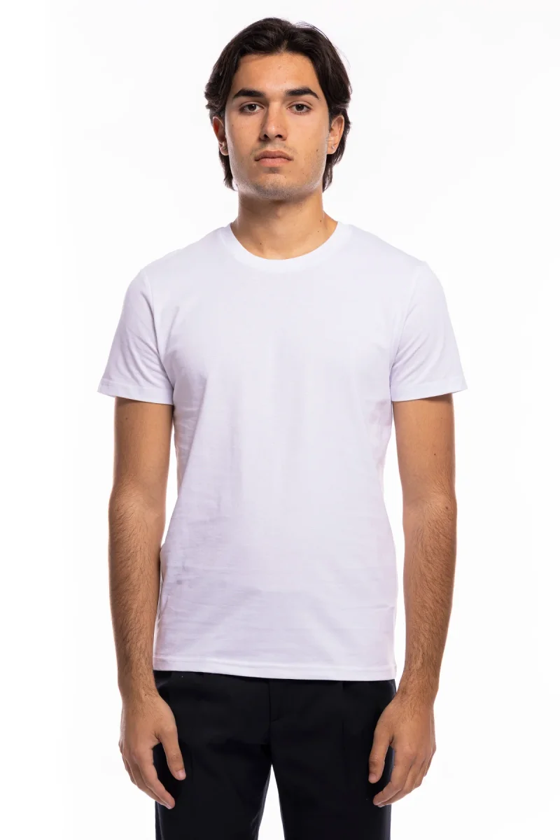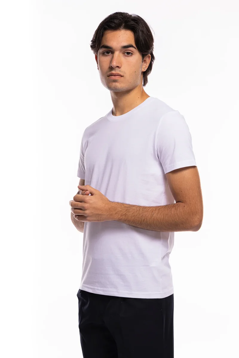T-shirt uomo bianca in cotone organico tinta unita regular fit elasticizzata girocollo