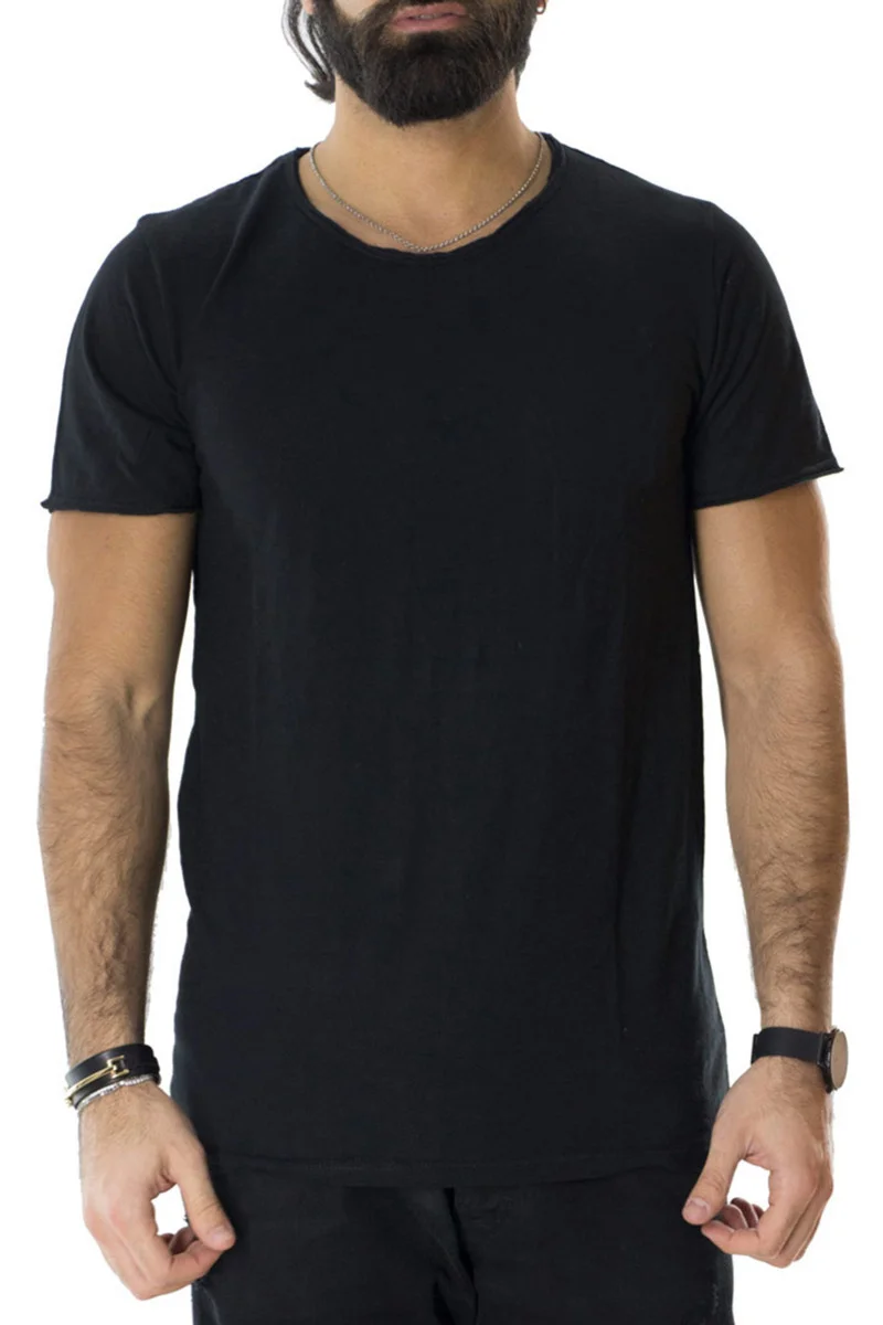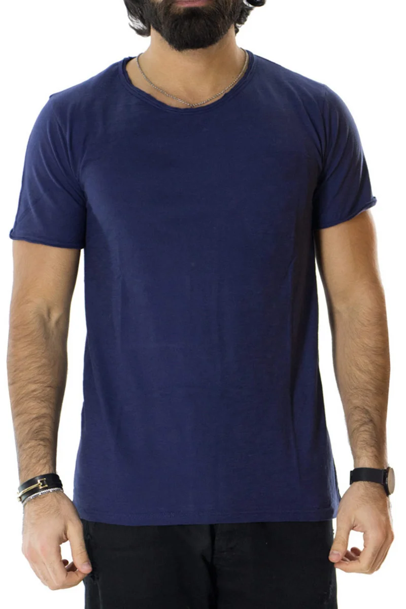 T-shirt uomo in cotone tinta unita regular fit elasticizzata girocollo taglio vivo
