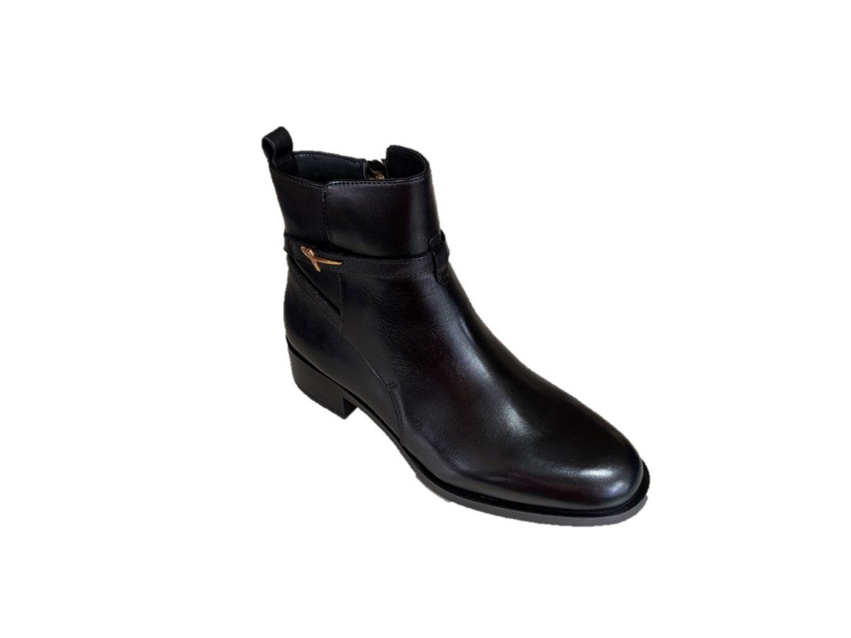 Stivaletti in pelle colore nero, tacco 3,7cm, suola in gomma, cerniera laterale