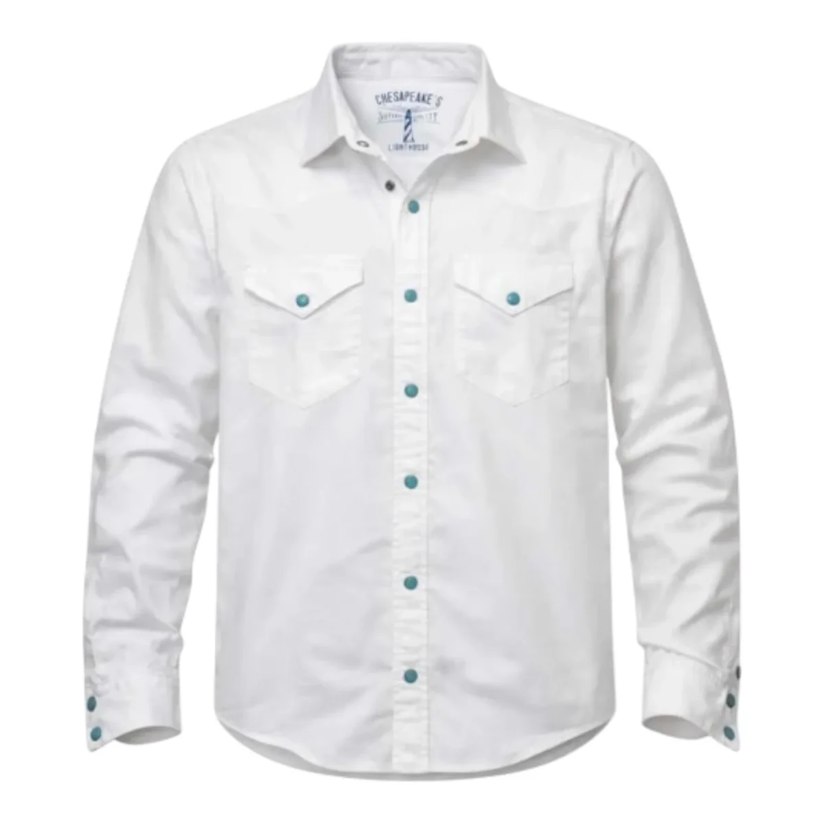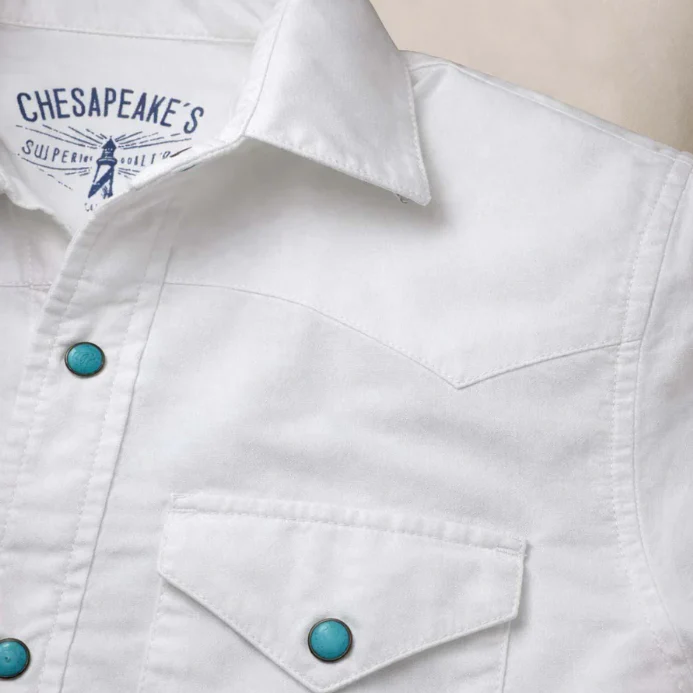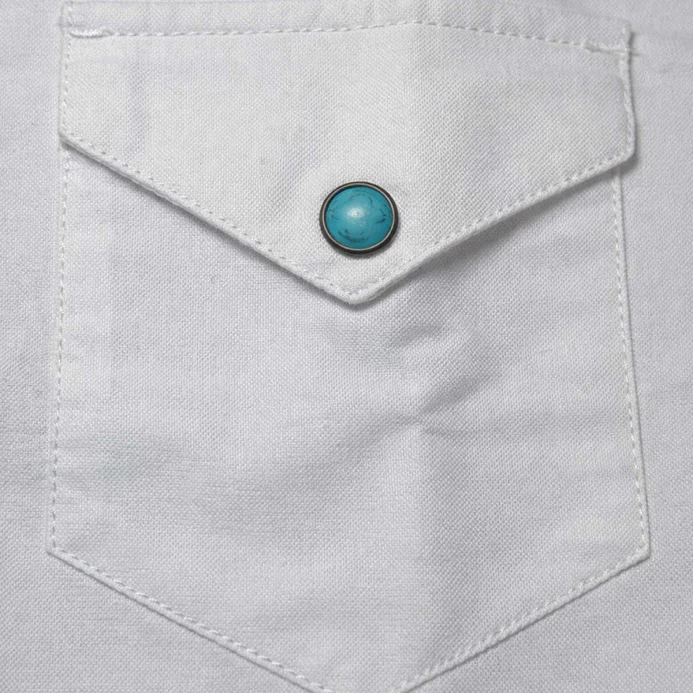 Camicia modello texana FLAGSTAFF realizzata in Oxford doppio ritorto bottoni in turchese.