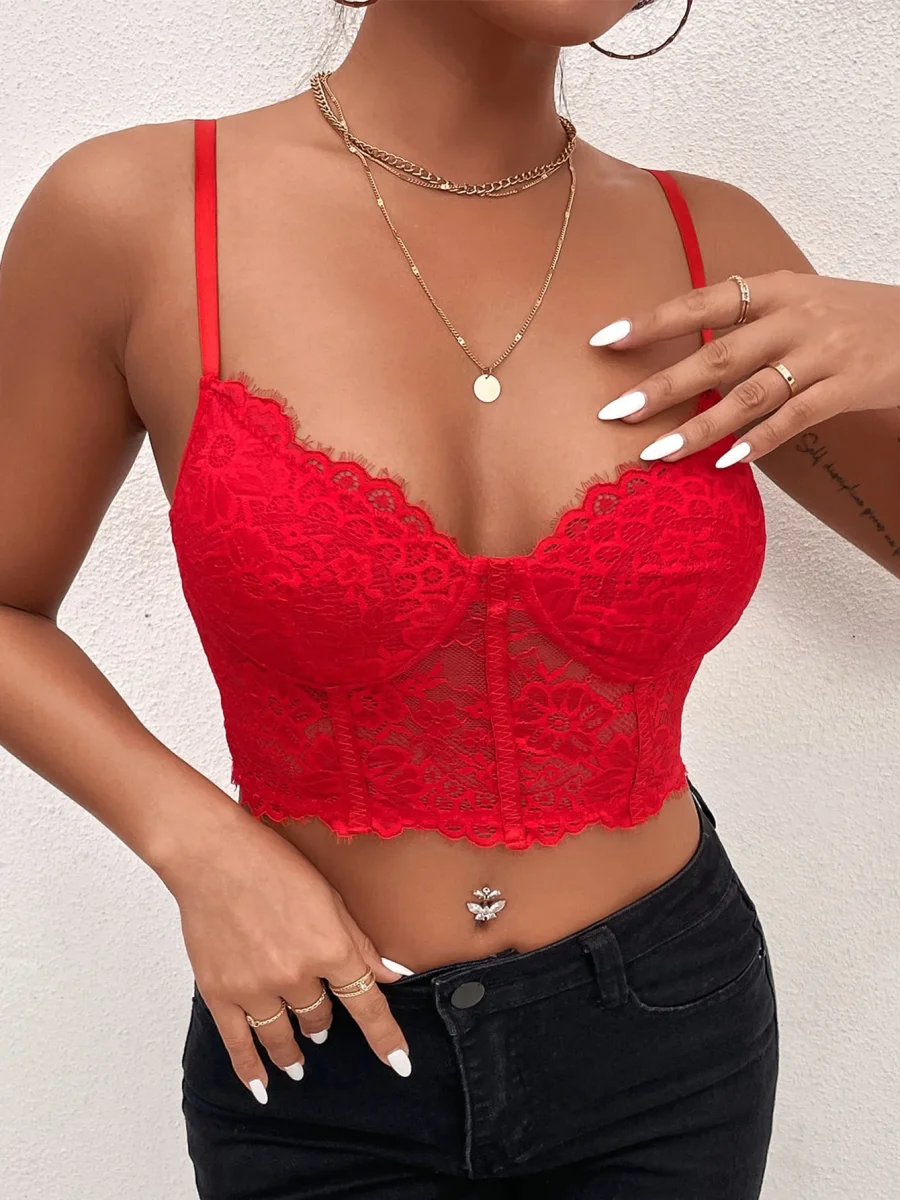 Top corto con bretelle sottile pizzo bustier