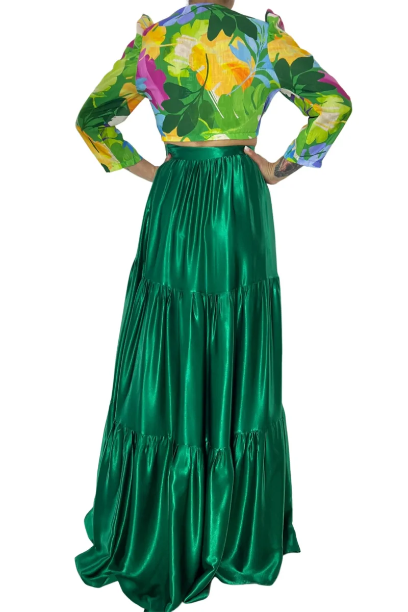 Top donna corto in cotone lino con spallina a sbuffo manica lunga