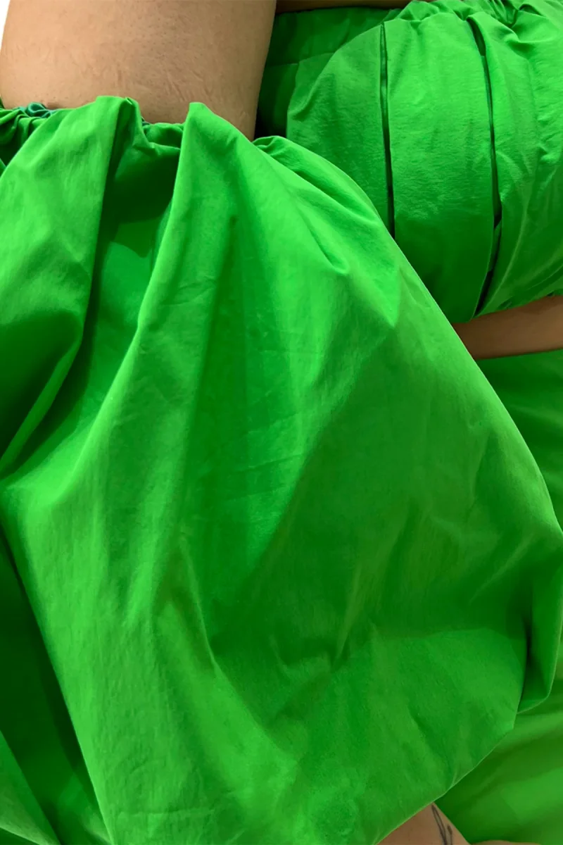 Top donna crop in cotone popeline scollo bardot manica palloncino arricciata elastica