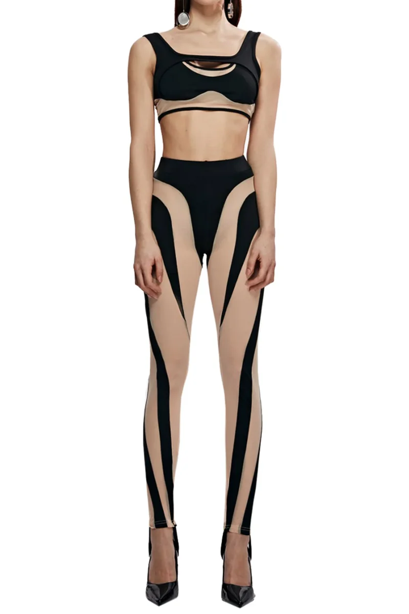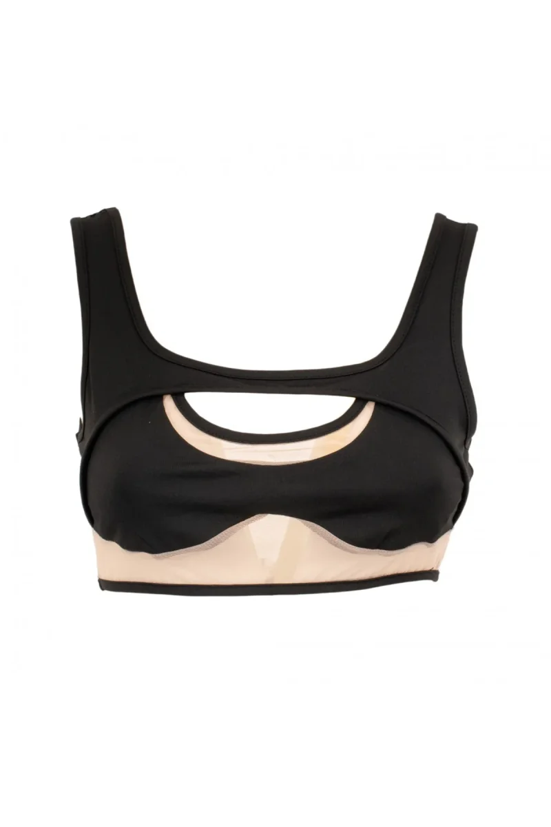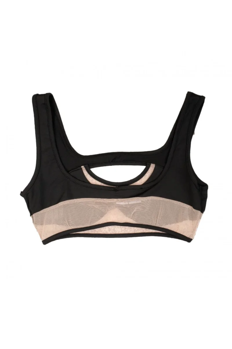 Top donna crop in lycra giromanica bretella e inserti in rete nude tessuto elastico
