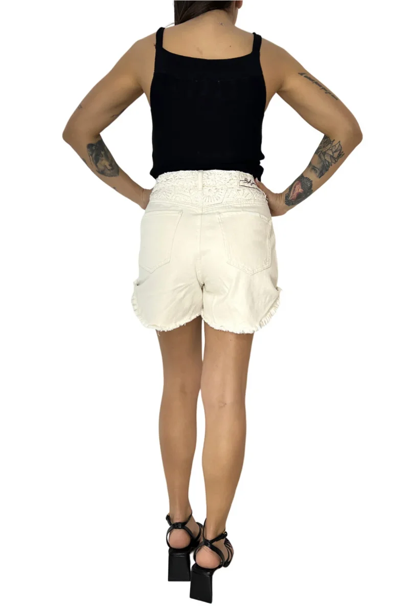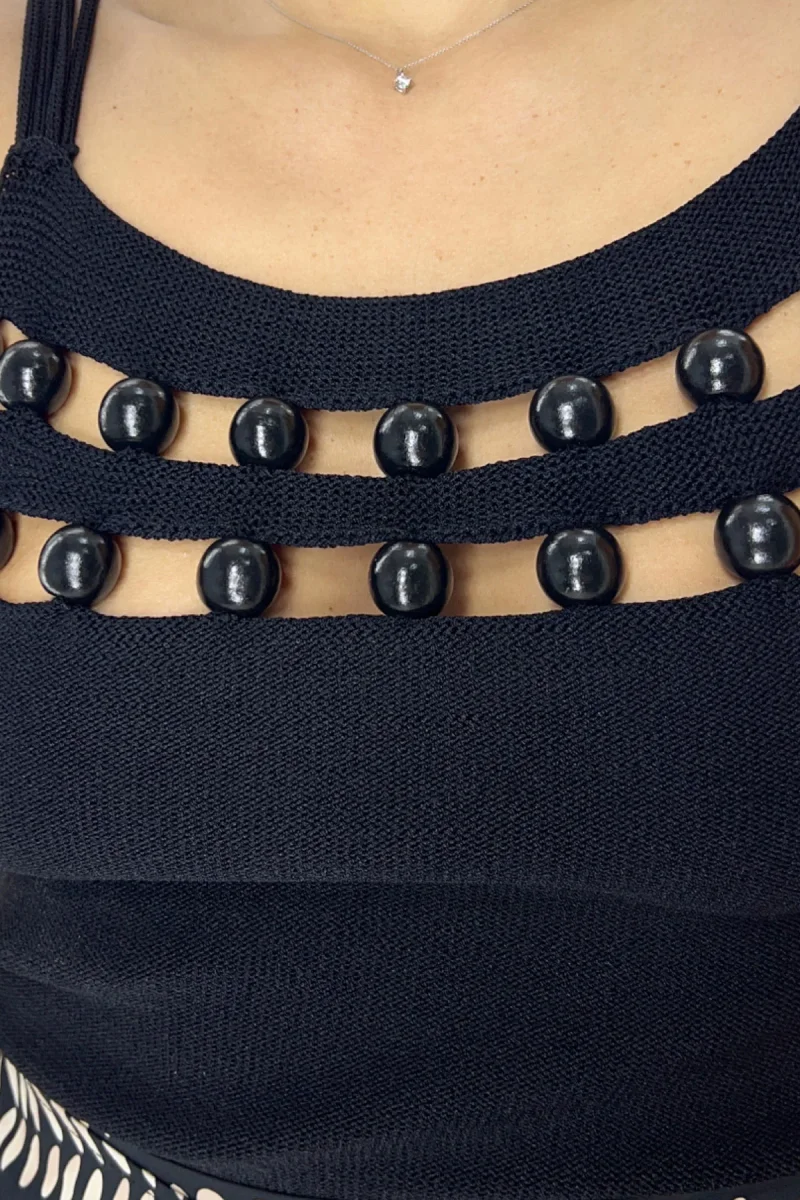 Top donna in maglina elastica a costine con dettaglio mini sfere tono su tono e aperture