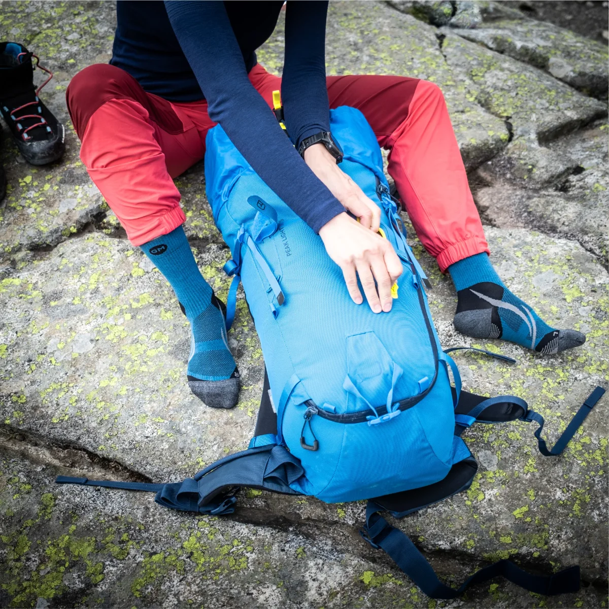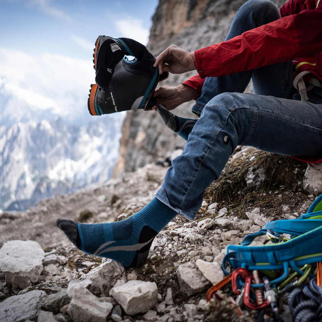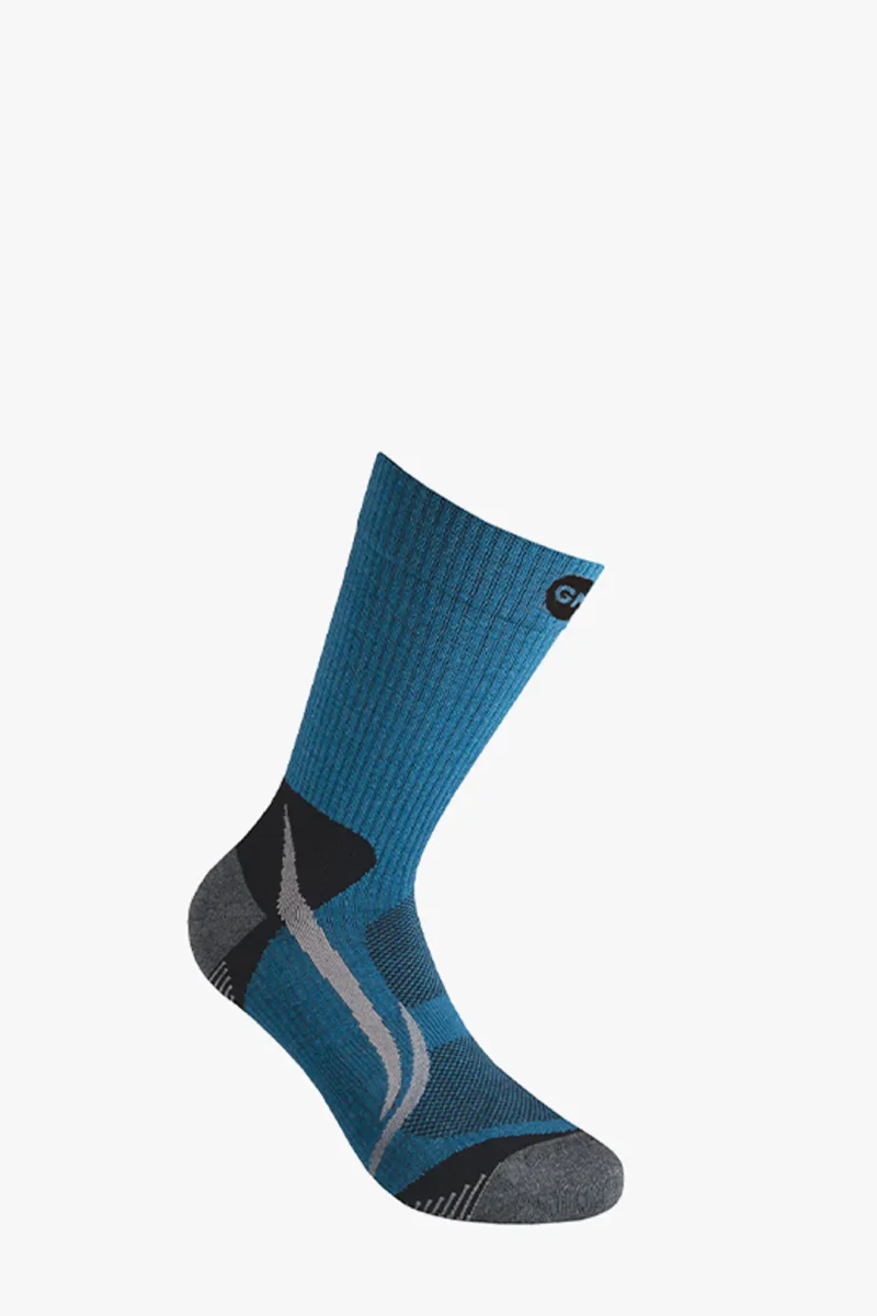 Progettati per i trekking di lunga durata con carichi pesanti. La presenza di lana merino garantisce una buona termoregolazione. L’impiego di filati tecnici elasticizzati la rendono resistente e durevole. La punta ed il tallone sono in NanoGLIDE®, per la sua funzione anti vesciche. È costruita ergonomicamente con punta asimmetrica per il piede destro e sinistro. La struttura elasticizzata ed avvolgente permette un’ottima stabilità sul piede e nella scarpa. La compressione moderata graduata agevola il ritorno venoso e contribuisce ad un più rapido ricambio di sangue ossigenato riducendo la sensazione di pesantezza.