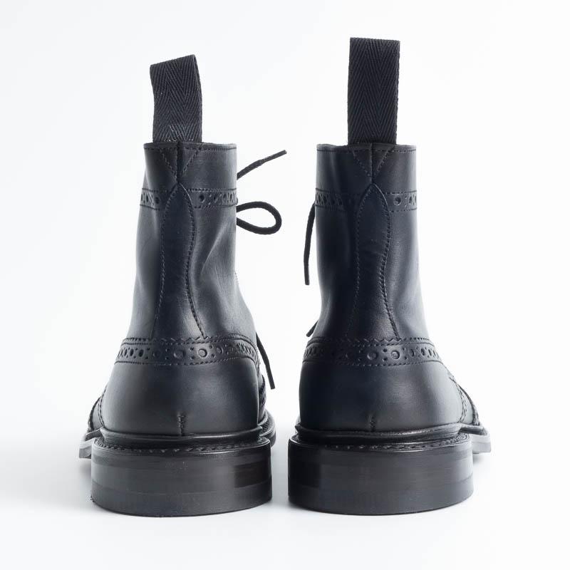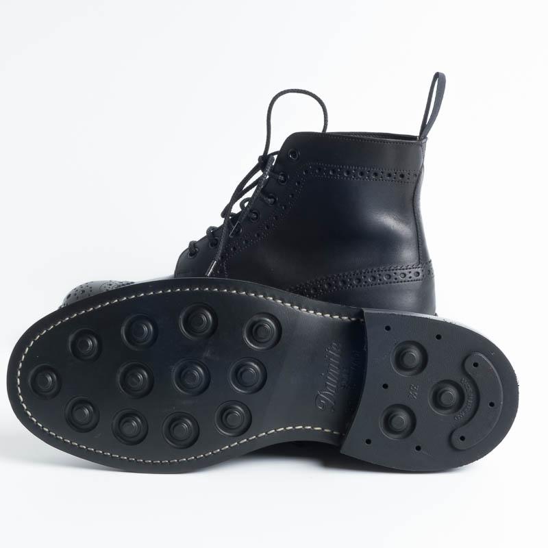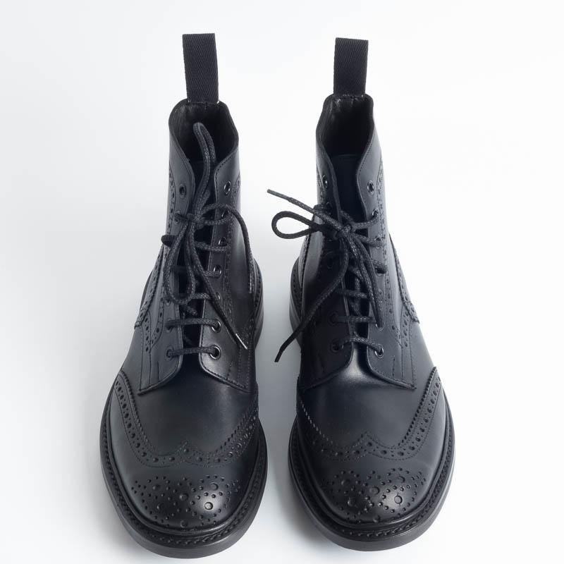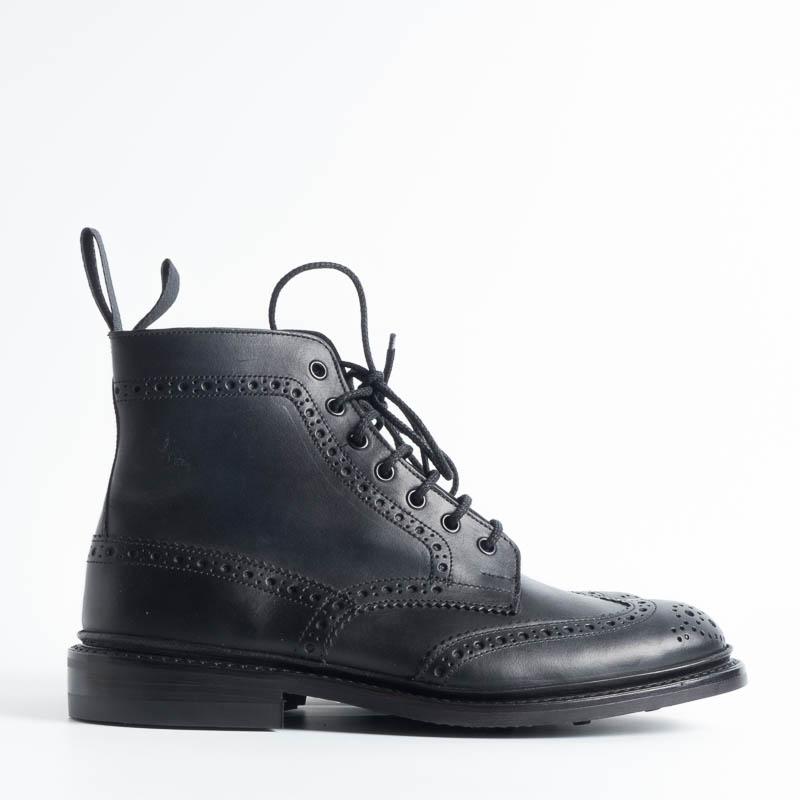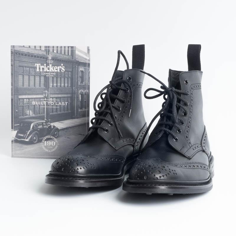 Anfibio allacciato di Tricker’s con lavorazione a coda di rondine, duilio realizzato in pelle di colore nero. Lavorazione artigianale e cucitura Goodyear, fondo gomma Dainite.