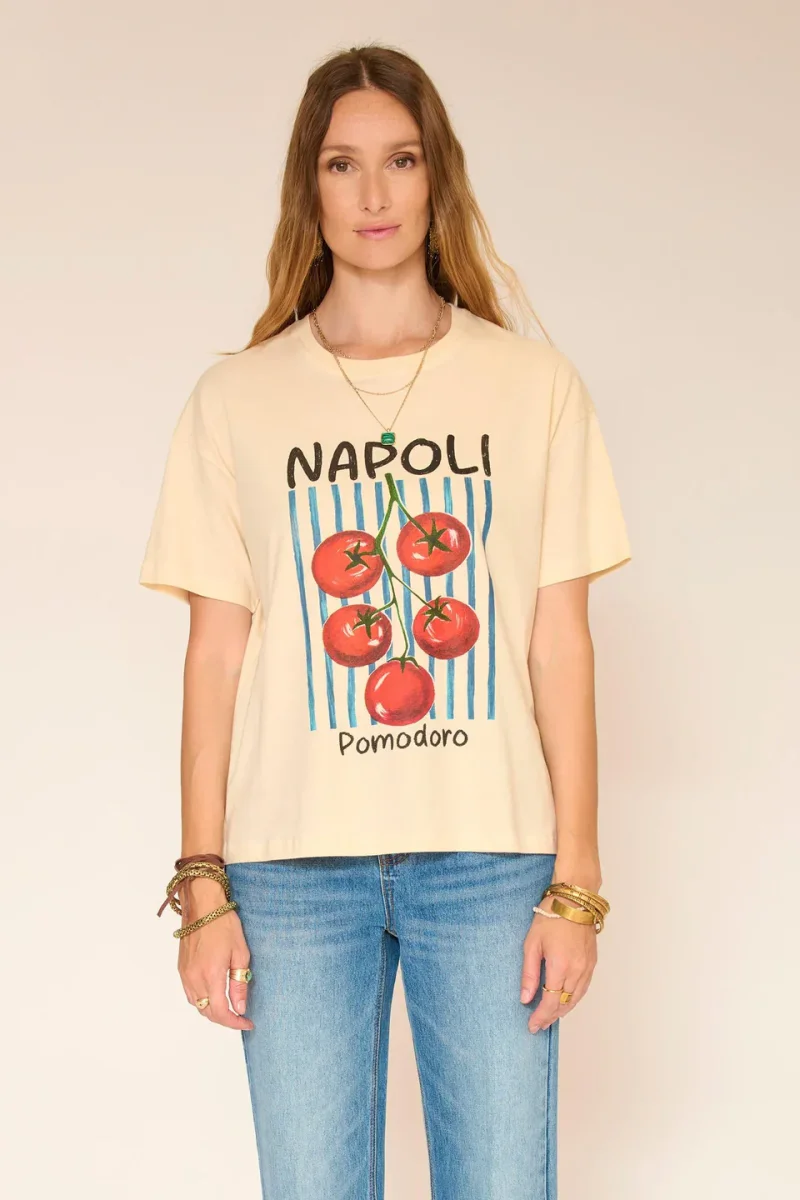 La t-shirt Torobo porta un tocco solare e grafico al guardaroba di tutti i giorni. Il suo taglio dritto e confortevole si associa a un cotone morbido e piacevole da indossare. Il motivo ispirato all’Italia, con accenti mediterranei, infonde una nota fresca ed estiva, ideale per risvegliare una silhouette casual.