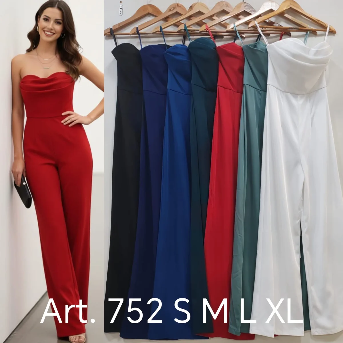 tuta intera elegante, perfetta per cerimonie o eventi formali, che unisce la raffinatezza di un abito lungo alla praticità del pantalone.