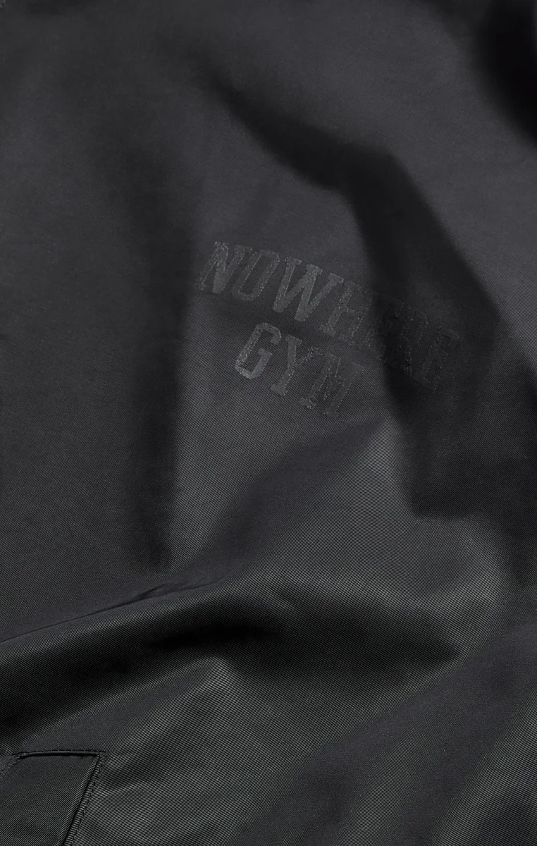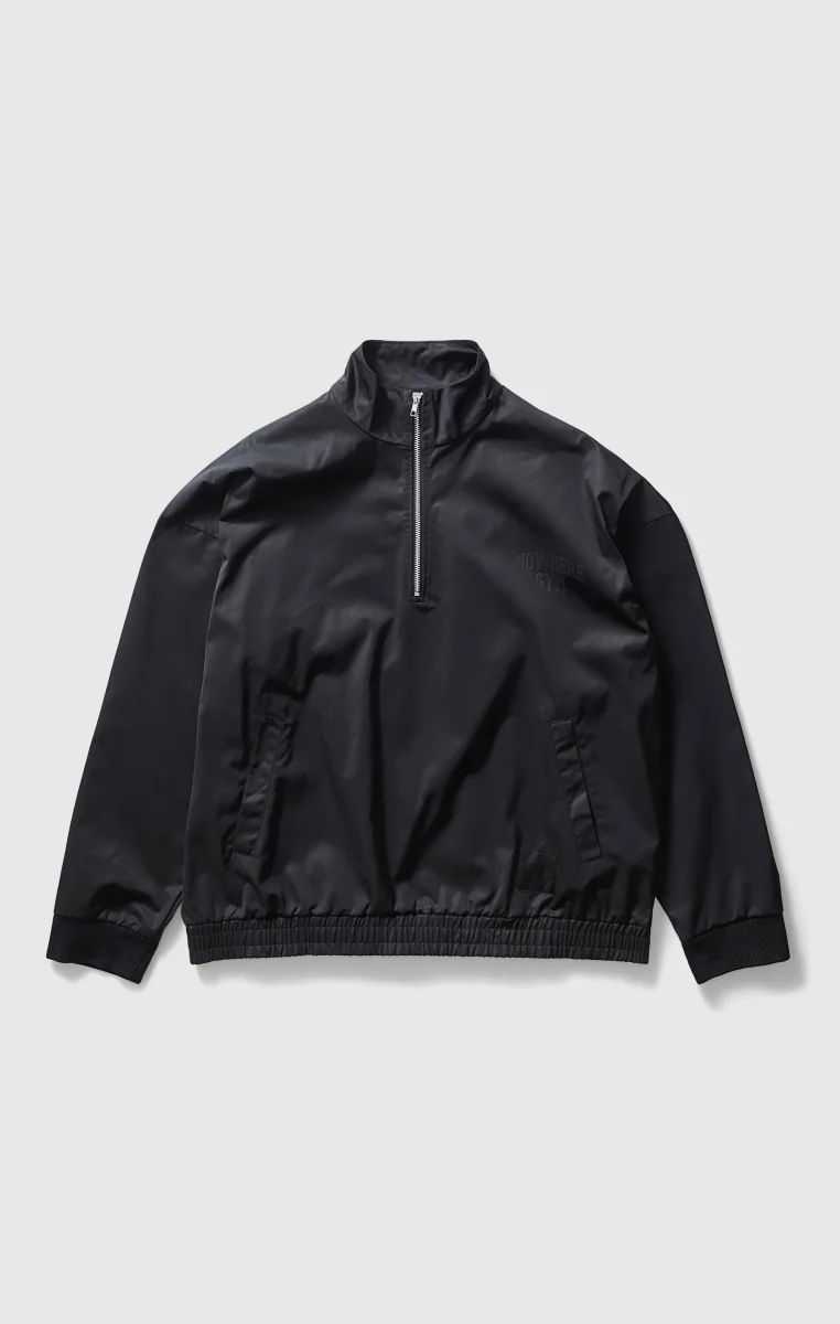 This unisex nylon top is part of the Nowhere Gym collection, designed for those who train anywhere, beyond the boundaries of the traditional gym. Made from recycled nylon with a water-repellent finish, it is a functional, urban piece built to support movement in any environment. The essential design, intentionally raw and in constant evolution, reflects the collection’s aesthetic, where imperfection becomes a defining feature. The loose fit ensures comfort and freedom of movement, while the half-zip closure adds versatility and attitude.@@@Loose Customized fit, very oversized fit |Woven recycled nylon fabric with water-repellent finish |Composition: 100% Polyamide |Weight: 35 g/m² |High neck with half-zip closure |Integrated side pockets |Elasticated hem and cuffs |Minimal design inspired by the Nowhere Gym aesthetic |Limited edition garment