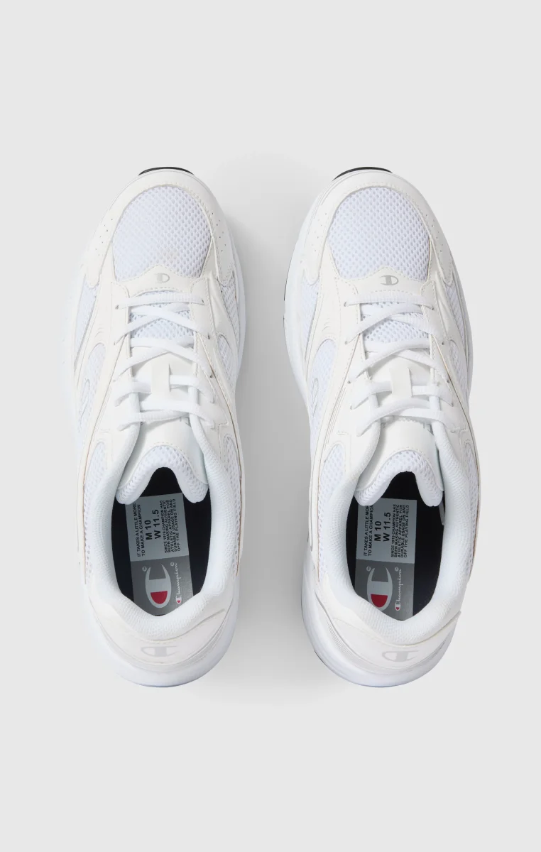 These unisex low cut trainers are inspired by retro running style, reinterpreted in a contemporary way for everyday wear and light sports activity. The upper is made of sustainable PU, a synthetic material developed to reduce environmental impact compared to conventional PU, combined with textile inserts that enhance structure and comfort. The versatile silhouette is designed for lifestyle use, while the EVA outsole with SBR insert provides cushioning and stability throughout the day.@@@Low cut profile |Upper in sustainable PU and textile material |Sustainable PU: synthetic material developed to reduce environmental impact compared to conventional PU |Upper composition: 76% Polyurethane, 24% Polyester |EVA outsole with SBR insert |EVA: lightweight material that enhances cushioning and comfort |SBR: durable synthetic rubber that improves stability and durability |Outsole composition: 90% EVA, 10% SBR |Lace-up closure |Contrast Champion logo on the side