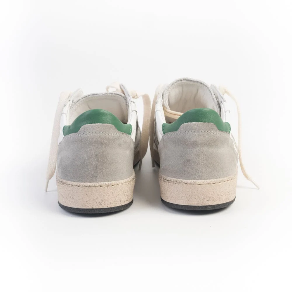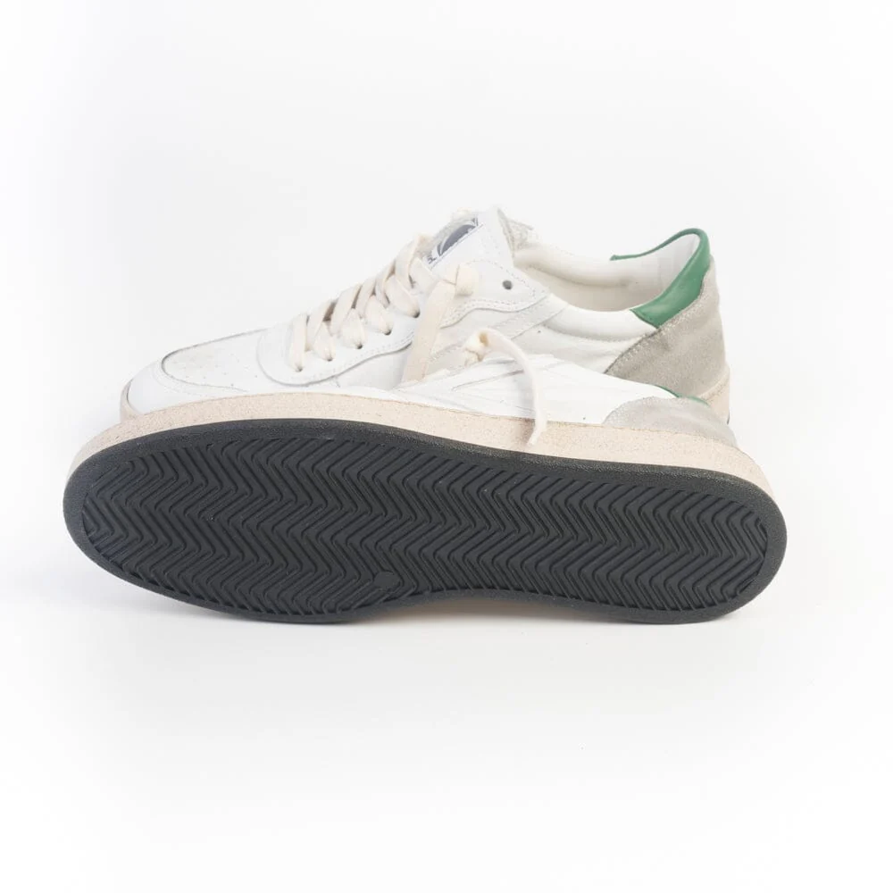 Sneakers Davis di Valsport realizzate in pelle di colore bianco con effetti anticati e camoscio di colore grigio. Lacci in cotone di colore avorio ad effetto invecchiato. Lacci di scorta di colore nero. Dettaglio tallone in pelle di colore verde. Suola in gomma effetto invecchiato. Soletta interna in pelle estraibile.