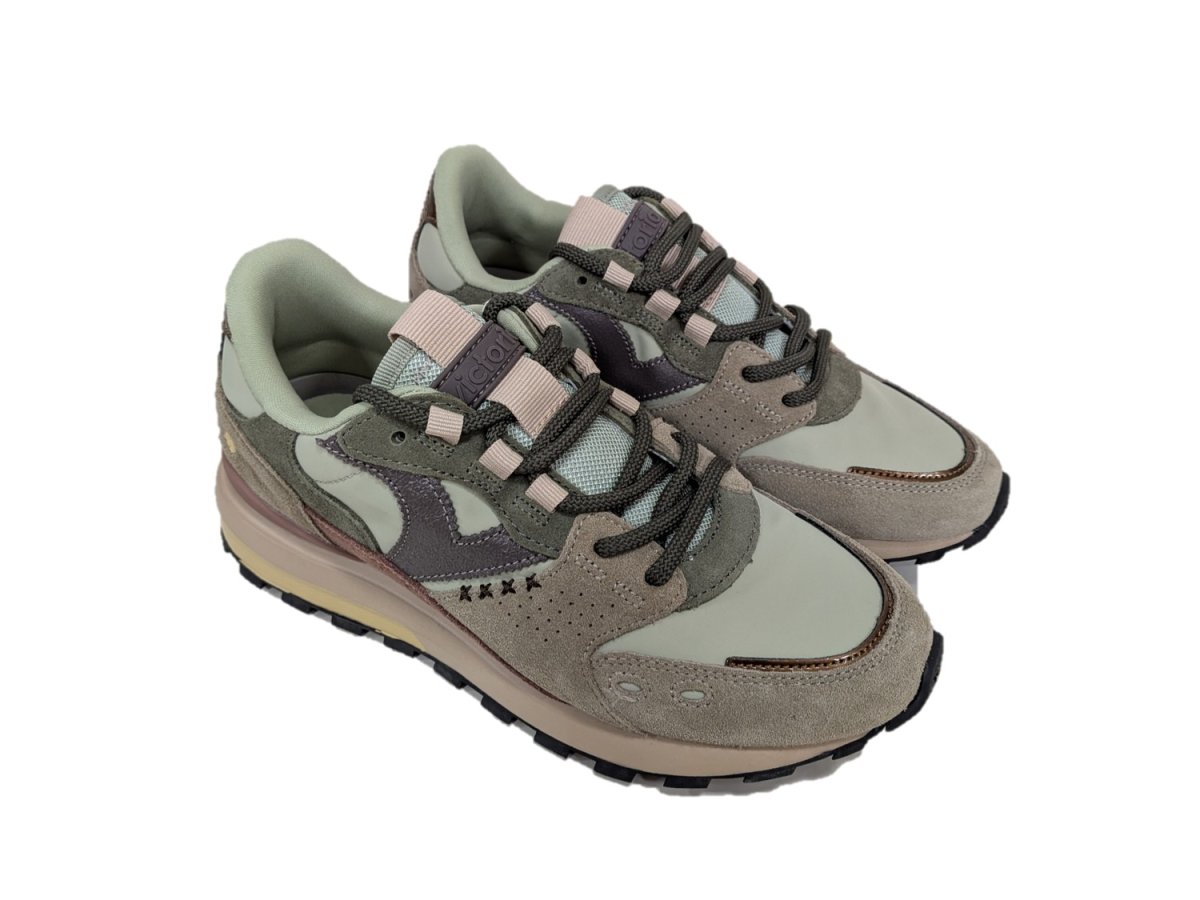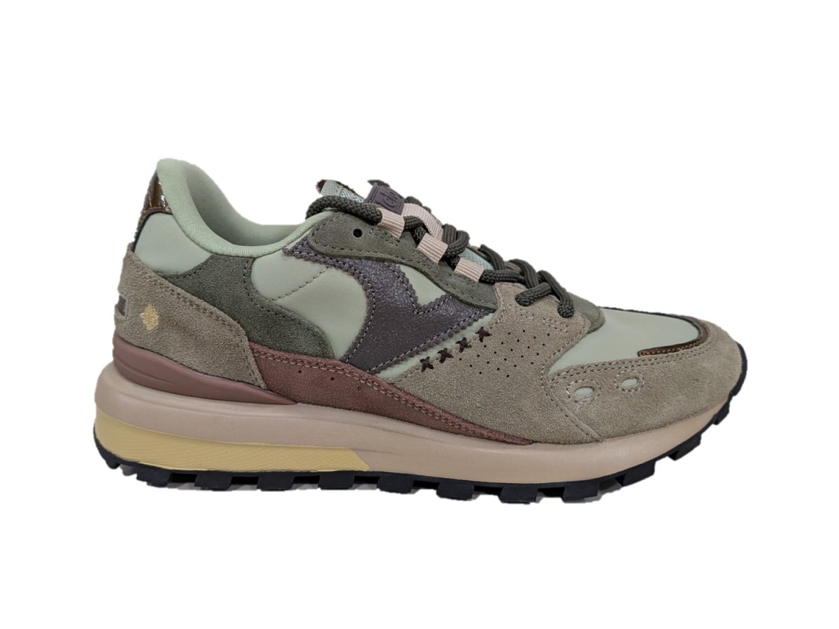 Sneakers da donna realizzate in nylon con inserti in crosta di pelle tono su tono e dettagli sintetici. Chiusura con lacci rotondi tono su tono. Suola bicolore e battistrada con rilievi antiscivolo con logo, che favorisce una migliore presa. Stabilizzatore nel tallone. Inoltre, includono una soletta ergonomica estraibile e molto confortevole.