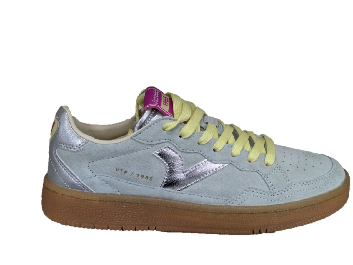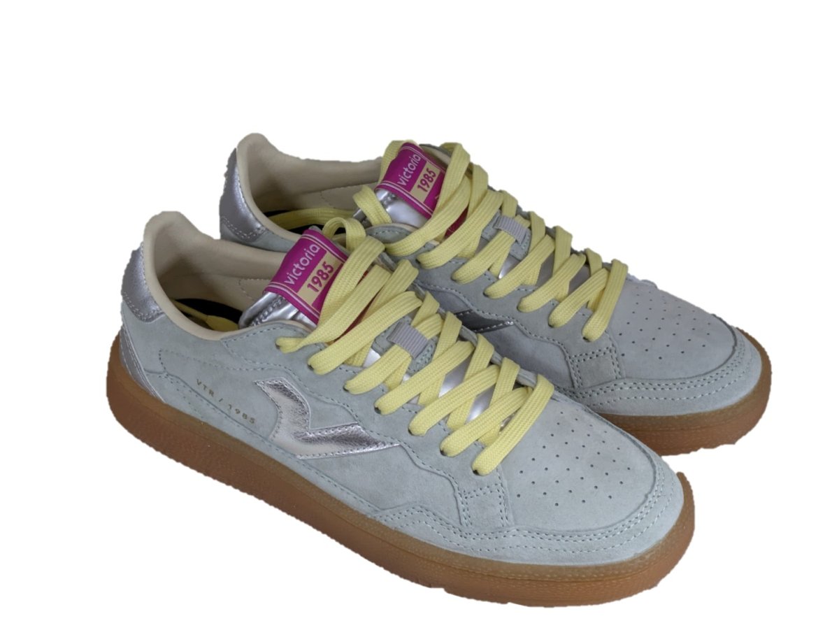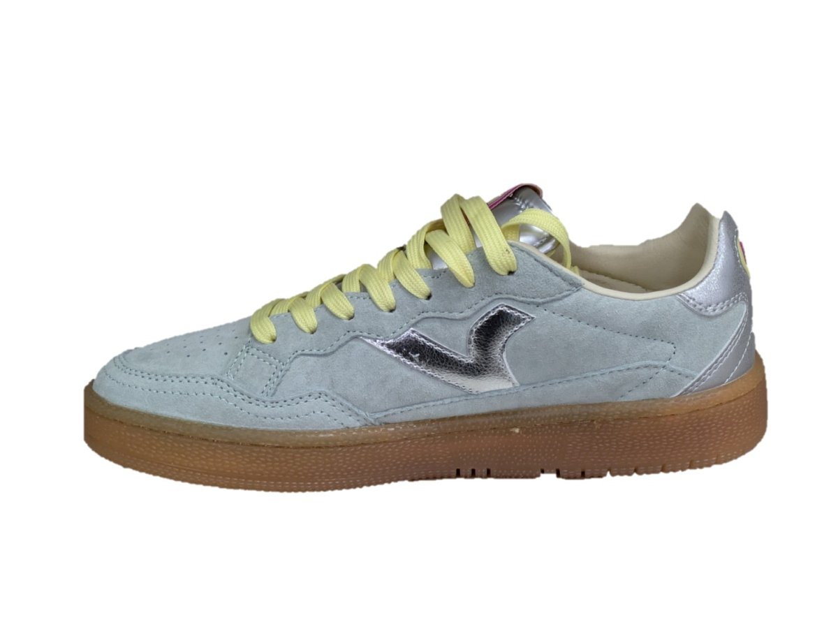 Sneakers sportive unisex realizzate in camoscio effetto “velour” con dettagli in PU. V retro laterale in colori a contrasto. Chiusura con lacci bicolore. Etichetta in gomma sulla talloniera. Fodera in microfibra traspirante e suola traslucida color caramello in gomma 100% naturale. Inoltre, includono una soletta ergonomica che si adatta alla forma del piede e regala una sensazione di comfort.