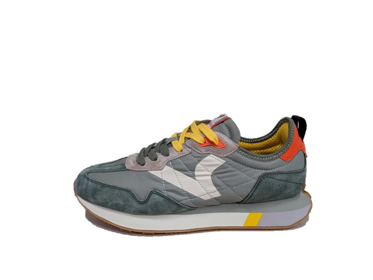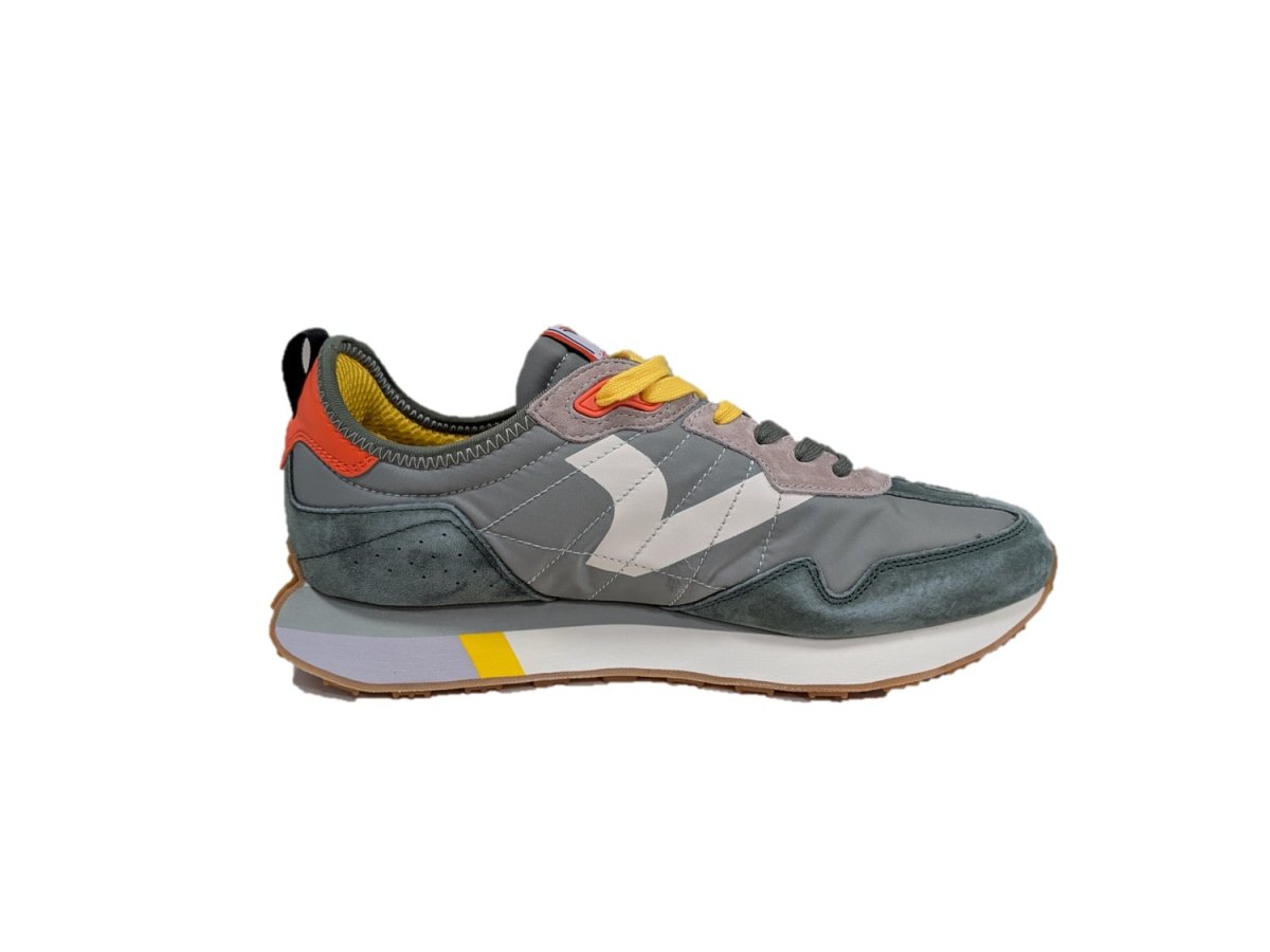 Sneakers unisex in nylon con inserti sovrapposti in pelle e dettagli in PU. V retro di Victoria laterale in TPU transfer.