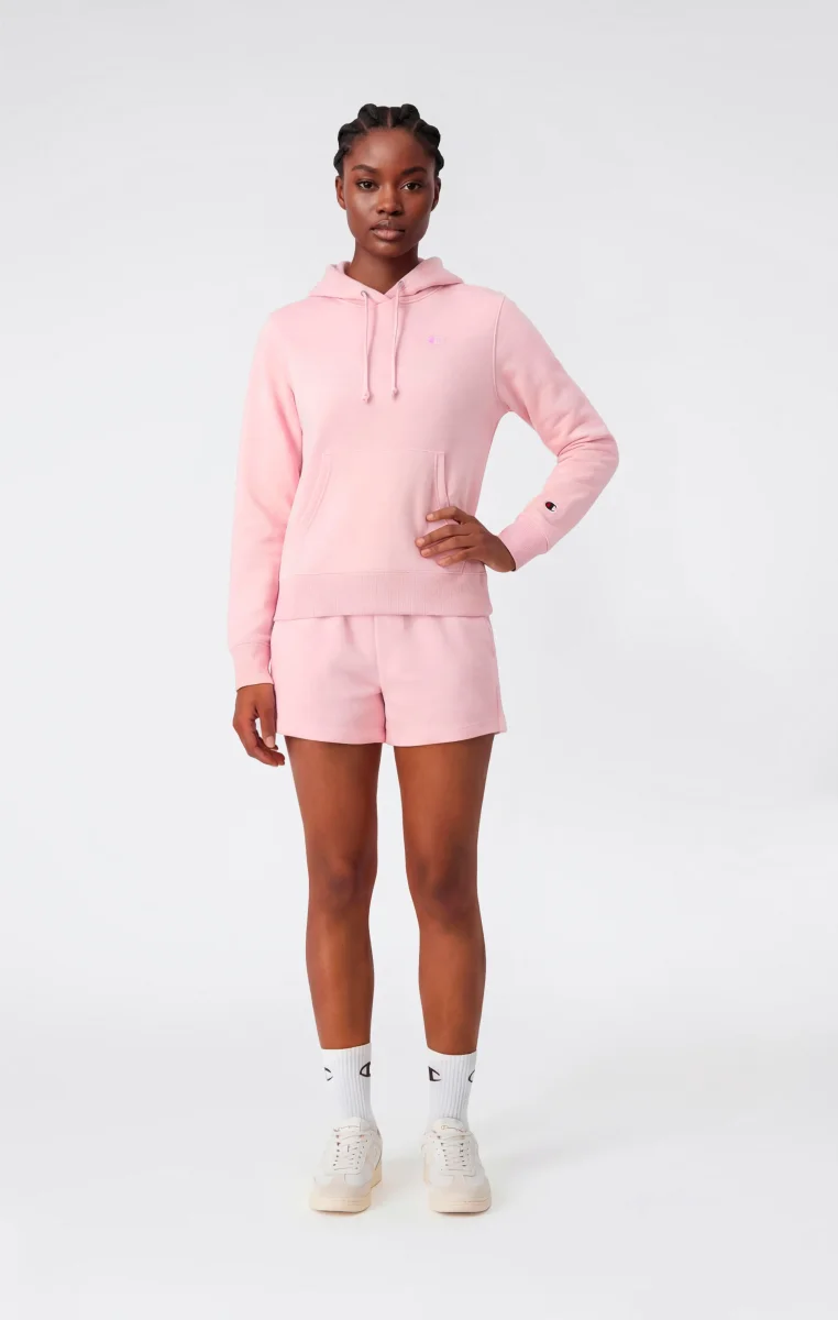These women’s Icons bermuda shorts are designed to deliver comfort and simplicity in a contemporary essential. Made from compact, lightweight poly terry cotton-blend fabric, they offer a soft hand feel and a comfortable structure ideal for everyday wear. The clean design features an elasticated waistband with adjustable drawstring, side pockets and a Standard Fit that ensures a relaxed, versatile look consistent with the Champion DNA.@@@Standard Fit, comfortable regular silhouette |Lightweight compact poly terry fabric |Composition: 69% Cotton, 31% Polyester |Weight: 280 g/m² |Elasticated waistband with drawstring |Side pockets |Embroidered Champion logo