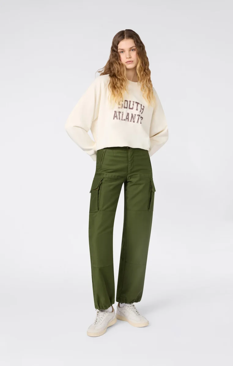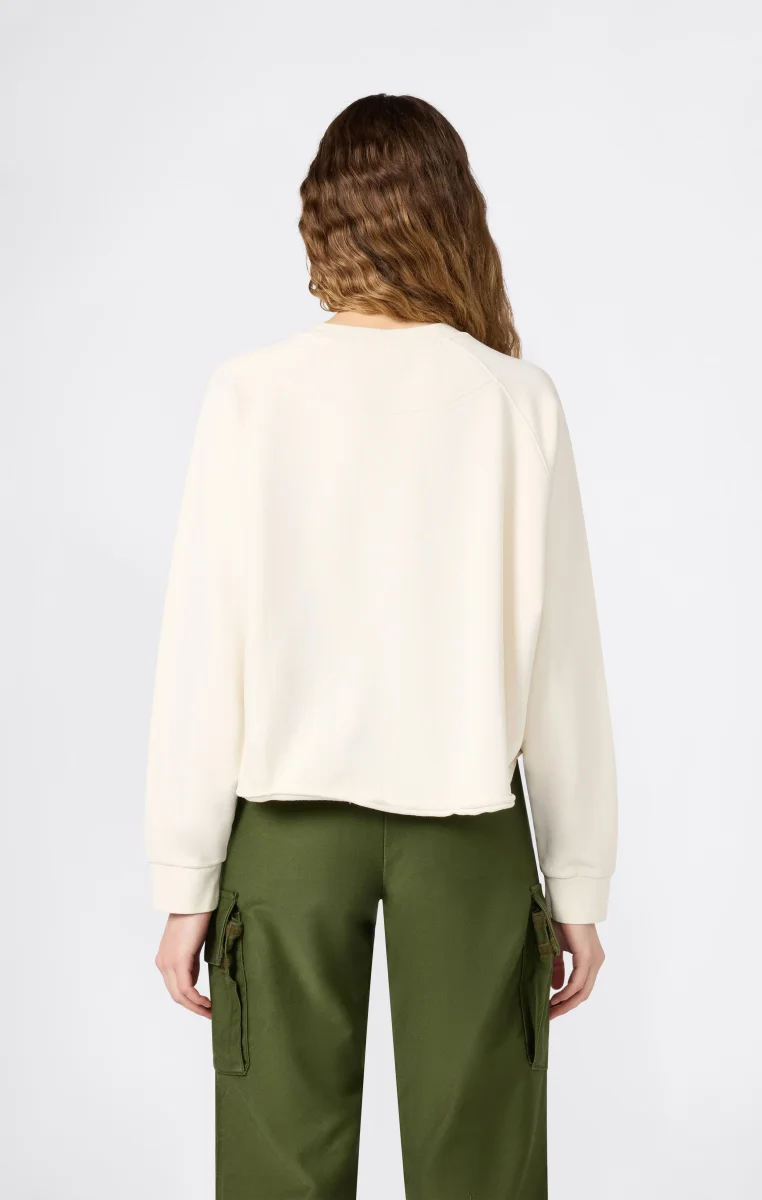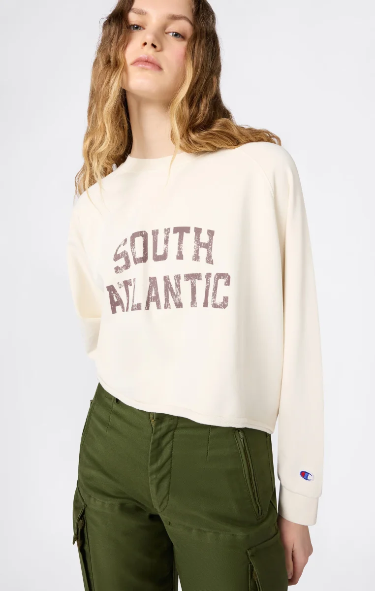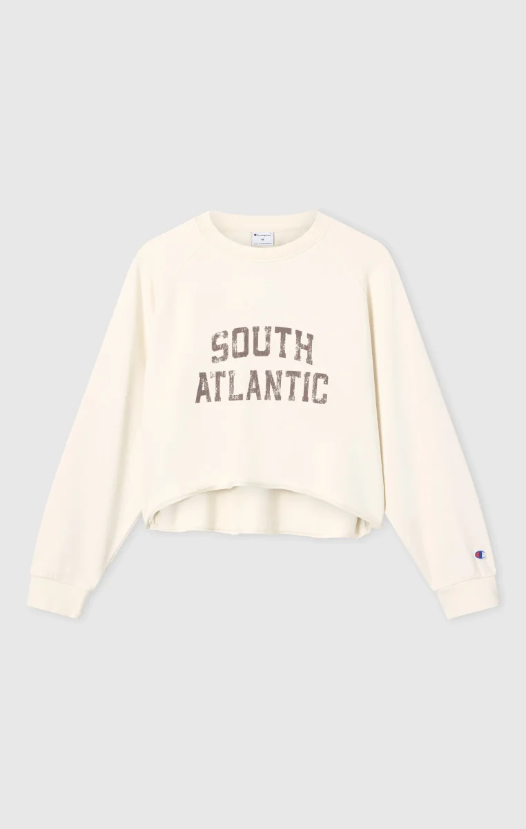 This women’s East West cropped crewneck sweatshirt features a bold, contemporary look. Made from cotton terry fabric, it offers a compact and comfortable structure, ideal for everyday wear. The Loose Fit creates a relaxed silhouette, balanced by the cropped cut that adds a modern touch. Long raglan sleeves and the East West graphic printed on the front complete the design, in line with the Champion DNA.@@@Loose Fit, relaxed and roomy |Cotton terry fabric |Composition: 100% Cotton |Fabric weight: 400 g/m² |Cropped design |Crewneck |Long sleeves with raglan construction |East West graphic printed on the front